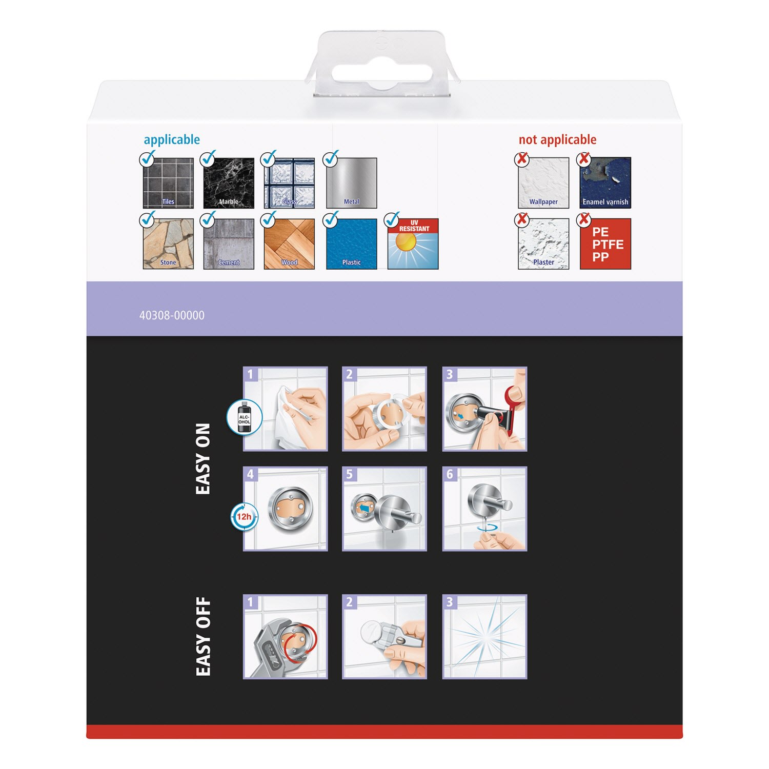 Elegant, kompakt und zeitlos schön: Der verchromte Handtuchhalter in ovaler Form präsentiert Handtücher in Bad. Keine Bohrlöcher hinterlässt: Der Handtuchhalterring trägt Belastungen bis zu 6 kg - die Wände im Badezimmer bleiben dabei unbeschädigt. Unkomplizierte, saubere Wandmontage: Mit der tesa Power.Kit Technologie zur einfachen Befestigung an der Wand - ohne Bohrmaschine, ohne handwerkliche Vorkenntnisse, ohne den sonst anfallenden Schmutz