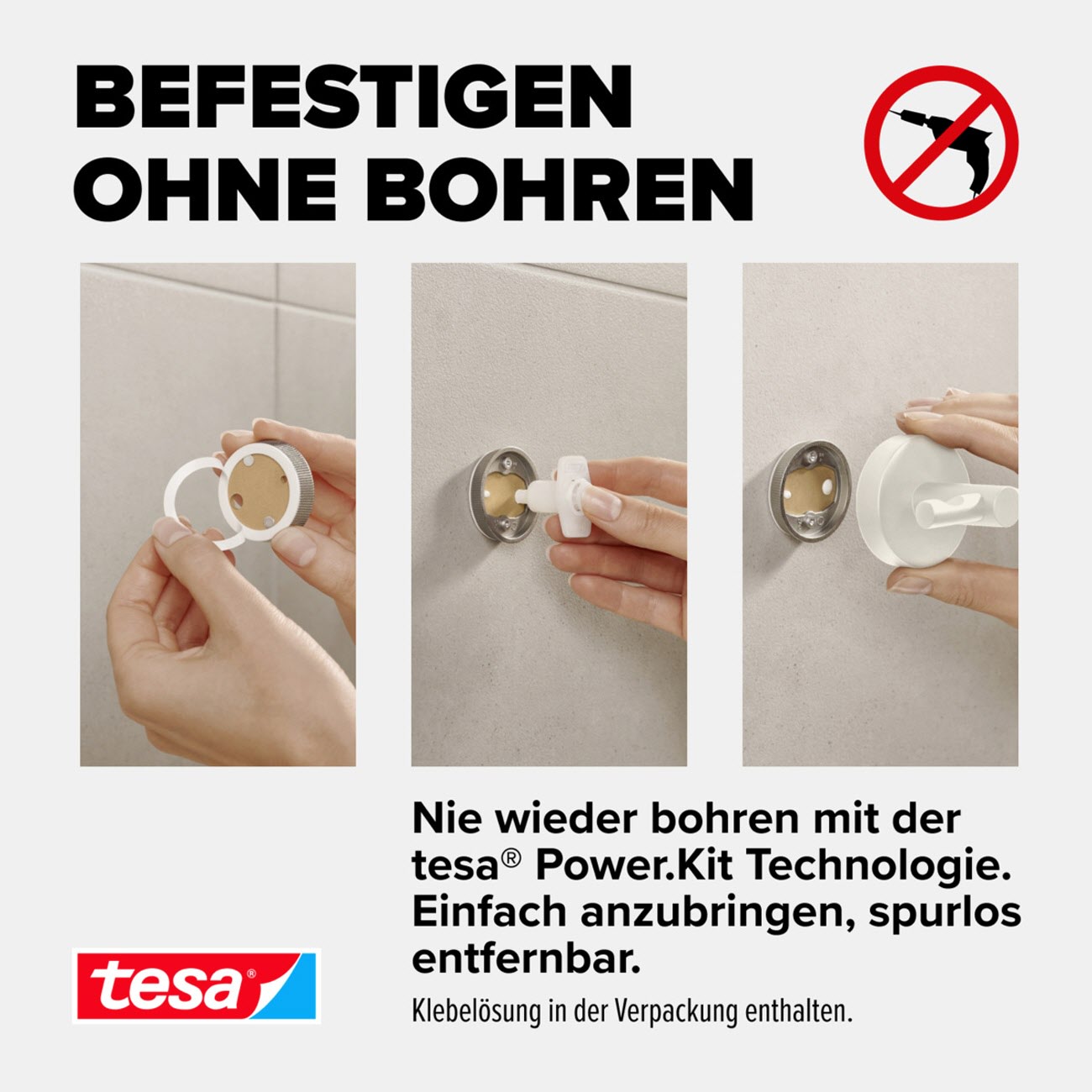 - Unkomplizierte, saubere Wandmontage: Mit der tesa Power.Kit Technologie zur einfachen Befestigung an der Wand - ohne Bohrmaschine, ohne handwerkliche Vorkenntnisse, ohne den sonst anfallenden Schmutz