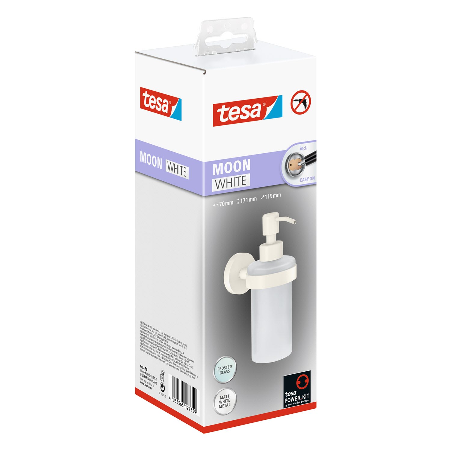tesa MOON WHITE Seifenspender mit Wandhalterung
