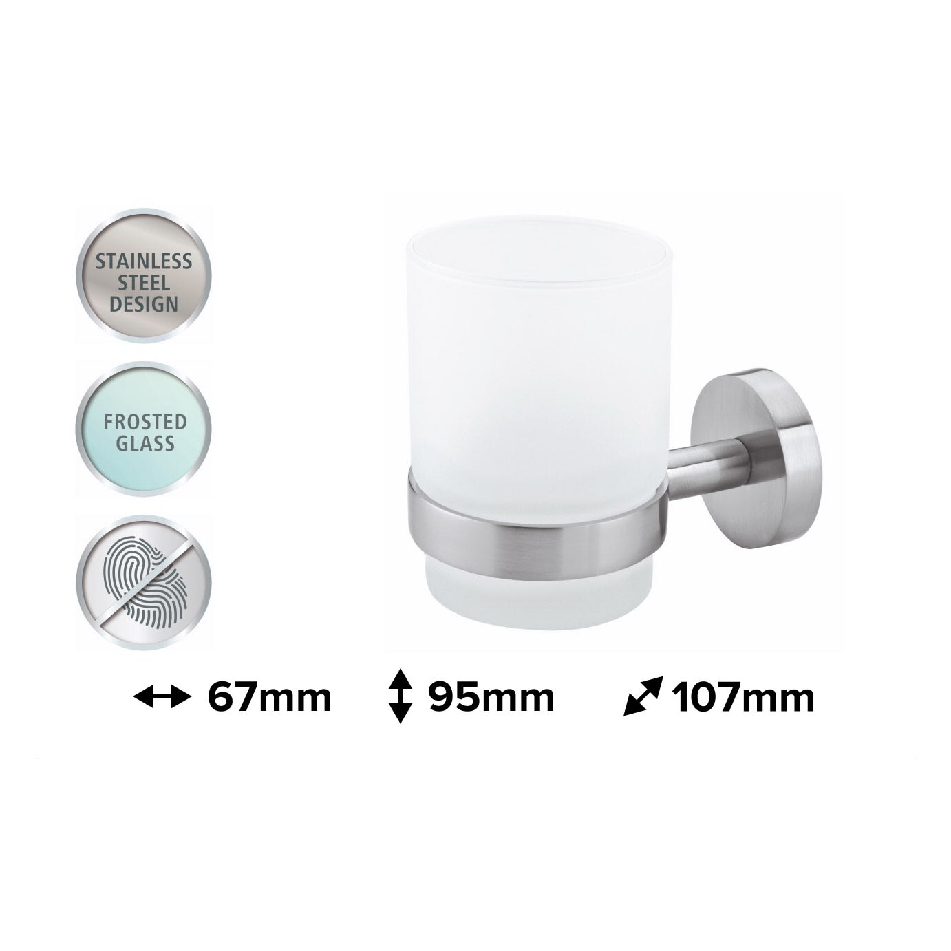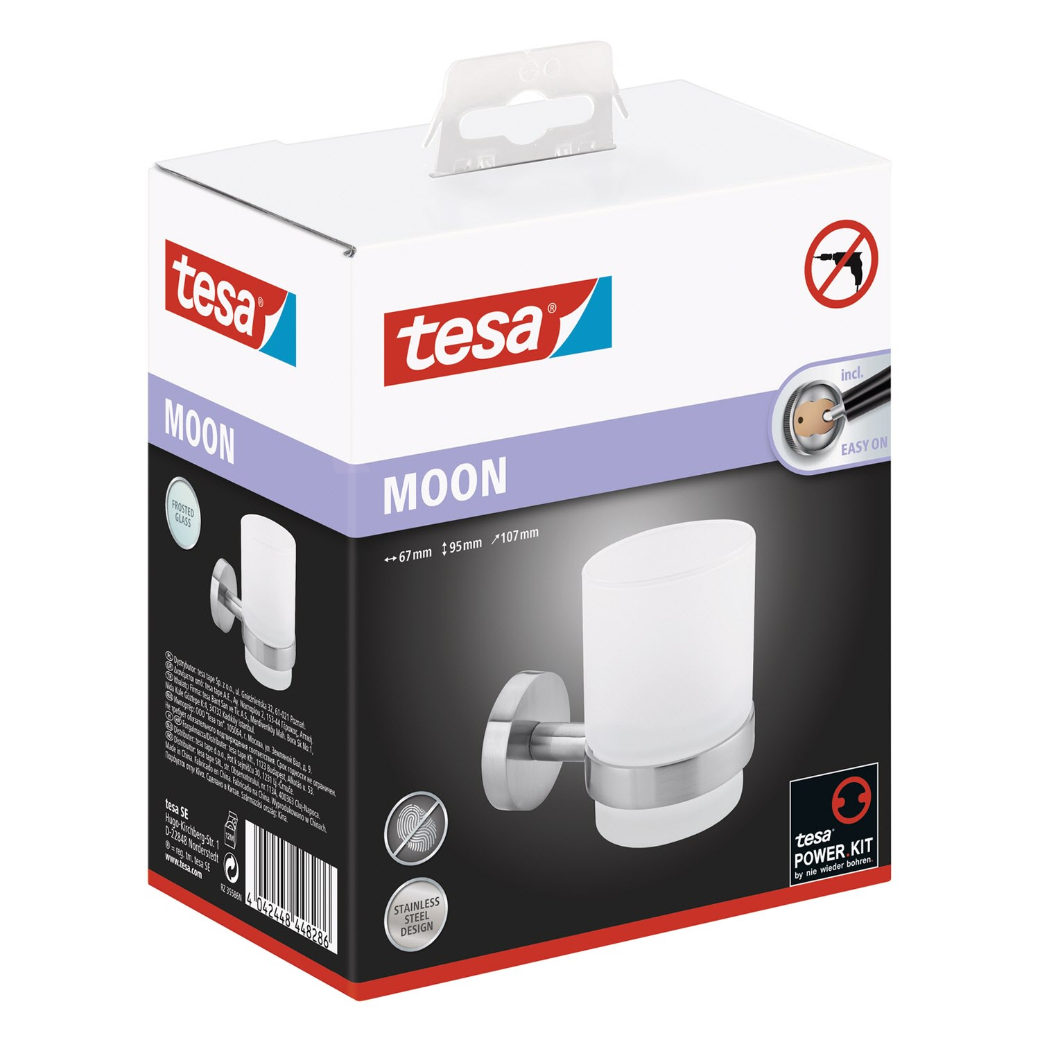 Ein attraktives Duo fürs Bad: Edler Zahnputzbecher aus satiniertem Glas, gehalten von einem edlen, verchromten Zahnbecherhalter - ein praktisches Bad-Accessoire, das einen eleganten Akzent. Leistungsstarke, beständige Klebetechnologie, die keine Bohrlöcher hinterlässt: Der Halter für den Mundbecher trägt Belastungen bis zu 6 kg - die Wände im Badezimmer bleiben dabei unbeschädigt. Unkomplizierte, saubere Wandmontage: Mit der tesa Power.Kit Technologie zur einfachen Befestigung an der Wand - ohne Bohrmaschine, ohne handwerkliche Vorkenntnisse, ohne den sonst anfallenden Schmutz