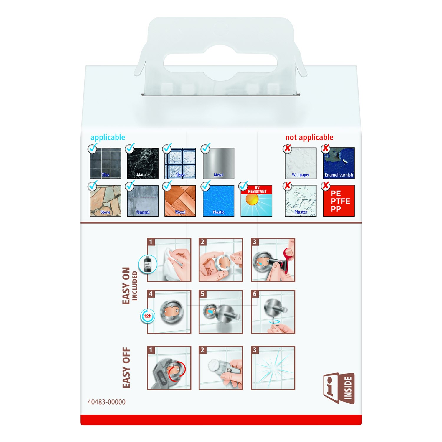 Garderobenhaken doppelt, mit innovativer tesa® Power.Kit Befestigungstechnologie. Schickes Design, Edelstahloptik, garantiert rostfrei, runde und abgerundete Formen. Sicherer Halt und hohe Belastbarkeit. Wieder ablösbar, keine Schäden am Untergrund, wiederverwendbar mit Befestigungsadapter BK20* Einfache und saubere Montage ohne Bohren