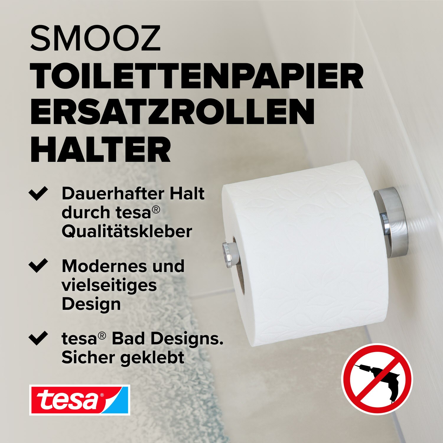 Der Halter für die Ersatzrolle Toilettenpapier demonstriert, wie schön auch ein funktionales Bad-Accessoire sein kann. Mit der tesa Power.Kit Technologie zur einfachen Befestigung an der Wand - ohne Bohrmaschine, ohne handwerkliche Vorkenntnisse, ohne den sonst anfallenden Schmutz.