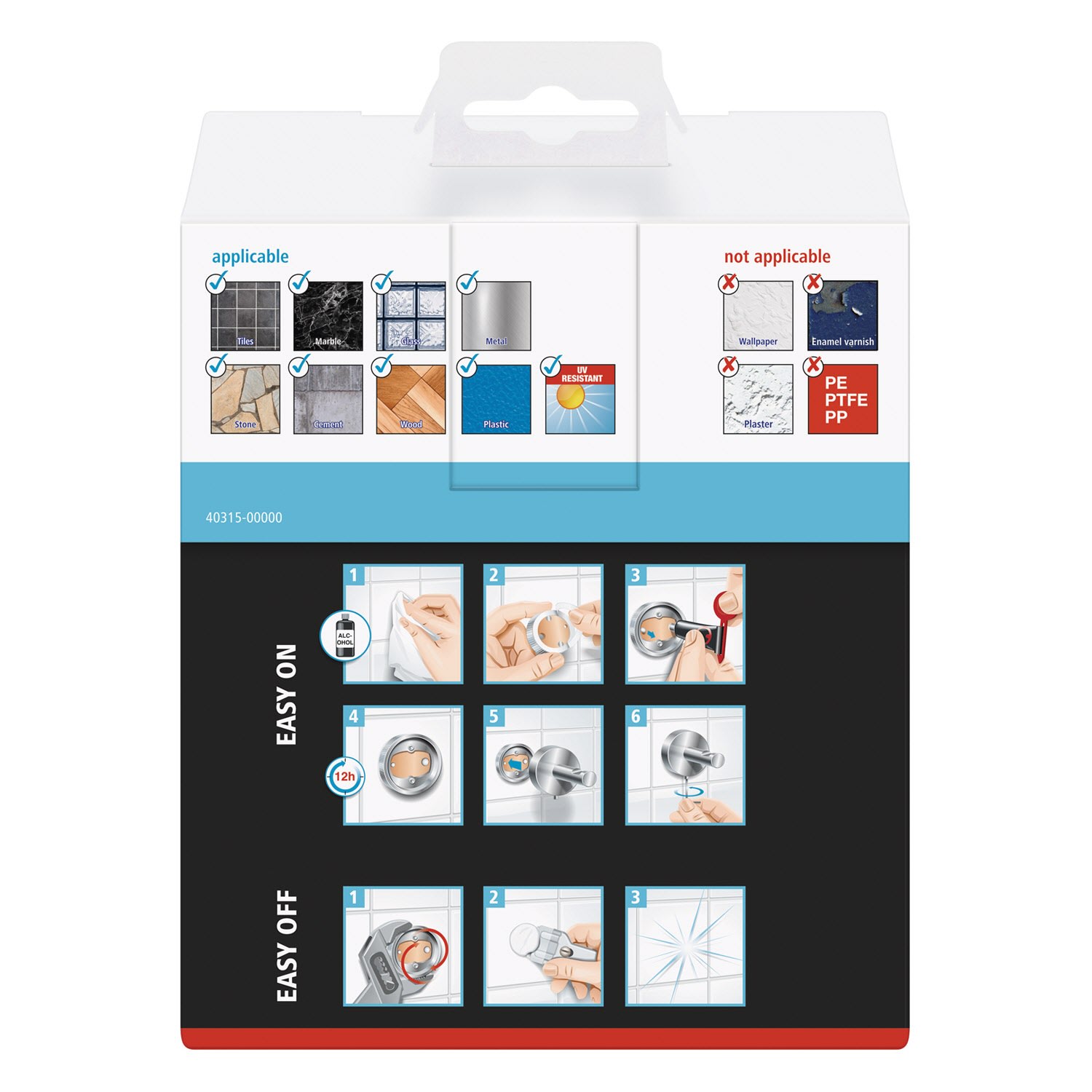 - nicht geeignet für Putz, Tapeten, Wandtextilien und Kunststoffe wie PP, PE und PTFE
