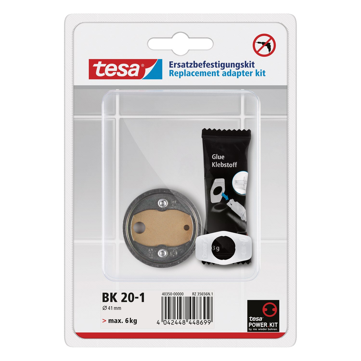 Kein Bohren notwendig: Der Adapter BK20 verwendet die patentierte tesa® Power.Kit-Technologie, die Komplettlösung für Klebeaufgaben, um passende Bad-Accessoires zuverlässig und einfach aufzuhängen. Der Adapter wird mit Klebstoff befestigt. Entsprechend muss nicht gebohrt werden, und Fliesen oder Wände werden nicht beschädigt. Der Adapter kann einfach entfernt werden, indem er mit einer Zange abgedreht wird.