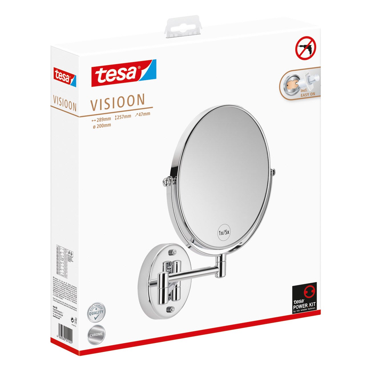 - Lieferumfang: 1 x tesa schwenkbarer Kosmetikspiegel VISIOON mit Doppelgelenkarm, 1 x tesa Power.Kit Befestigung