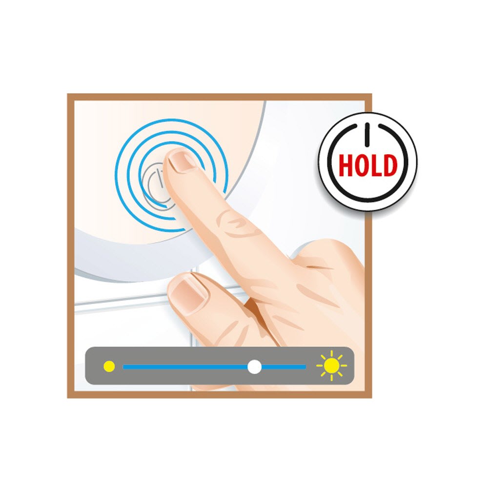 - Bedienung per Touch: Die Beleuchtung wird über die Spiegeloberfläche gesteuert, um sie ein- und auszuschalten sowie stufenlos zwischen warmem, neutralem und kühlem Weiß zu wechseln