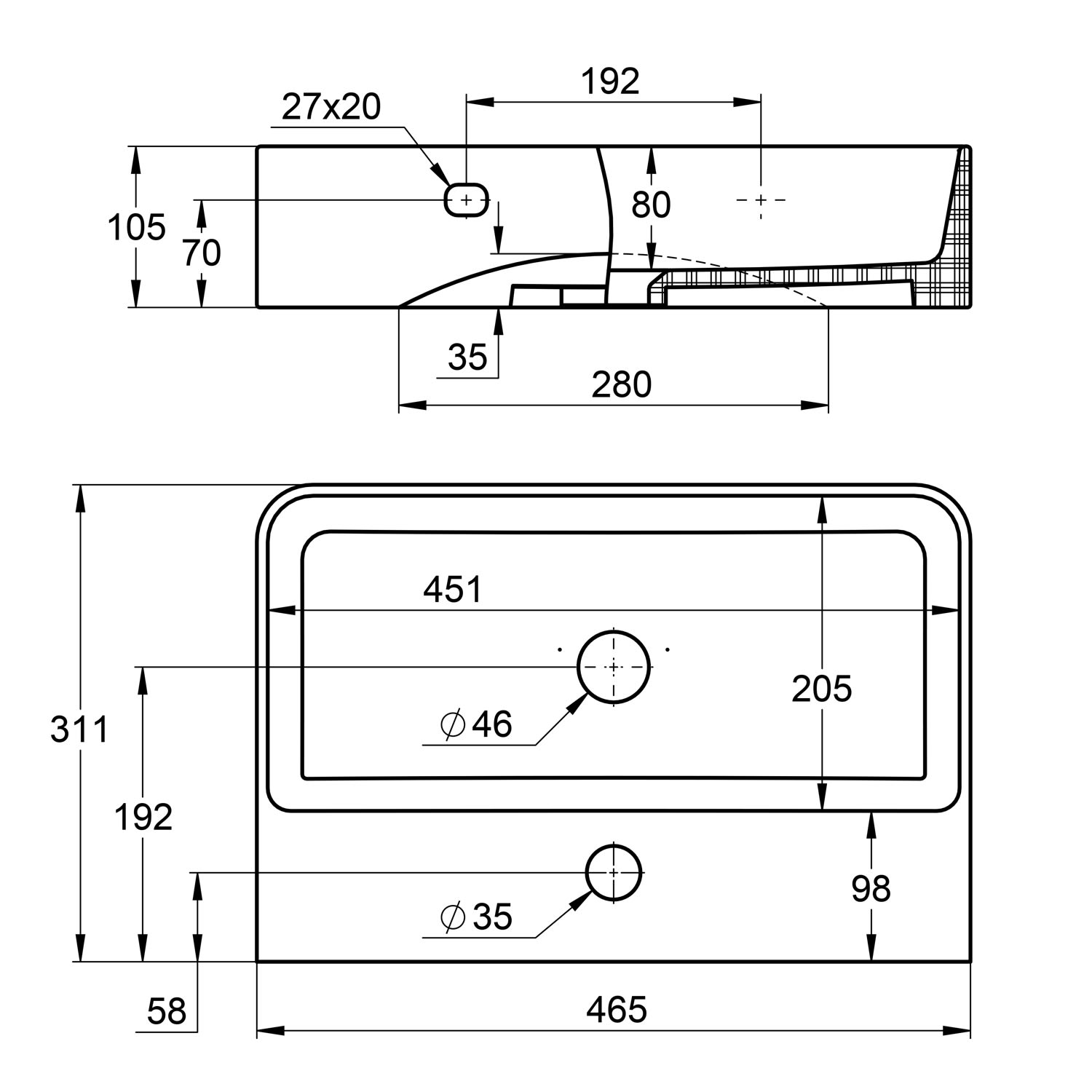 Treos Serie 800 Handwaschbecken 46,5 x 31,1 cm, mit 1 Hahnloch