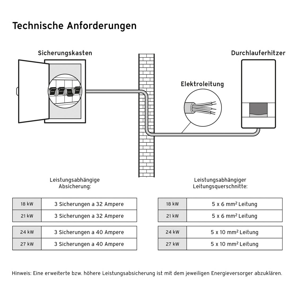 Zur Installation des Gerätes mit der ausgelobten Leistung ist ein Starkstromanschluss erforderlich. Die Installation darf demzufolge nur durch den jeweiligen Netzbetreiber oder durch ein in das Installateurverzeichnis des Netzbetreibers eingetragenes Installationsunternehmen erfolgen.