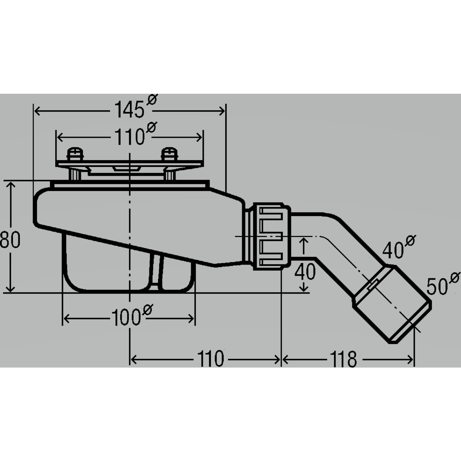 - mit 45° Ablaufbogen DN 40/50
