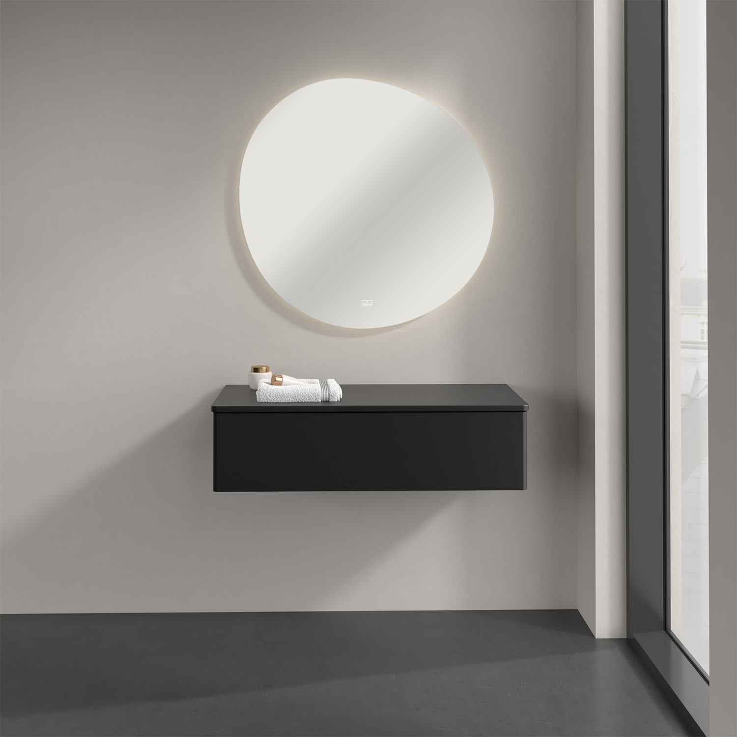 Ein hochwertiges Badmöbel von Villeroy & Boch mit sanfter Formsprache durch abgerundete Kanten: Das wandhängende Sideboard der Kollektion Antao bietet eine ideale Stauraummöglichkeit im Badezimmer und ist auch optisch ein Blickfang. Es verfügt über einen grifflosen Auszug mit Push-to-Open Funktion. Er lässt sich in seiner vollen Tiefe öffnen und ermöglicht so großzügigen Stauraum für diverse Utensilien, über die man nicht den Überblick verliert. Der integrierte Antirutschboden sorgt dabei dafür, dass der Inhalt sicher und fest steht. Handtücher oder auch Dekoartikel finden auf der Ablagefläche bequem ihren Platz. Für eine besonders leichte Pflege sorgt die mehrschichtig deckend lackierte Oberfläche.