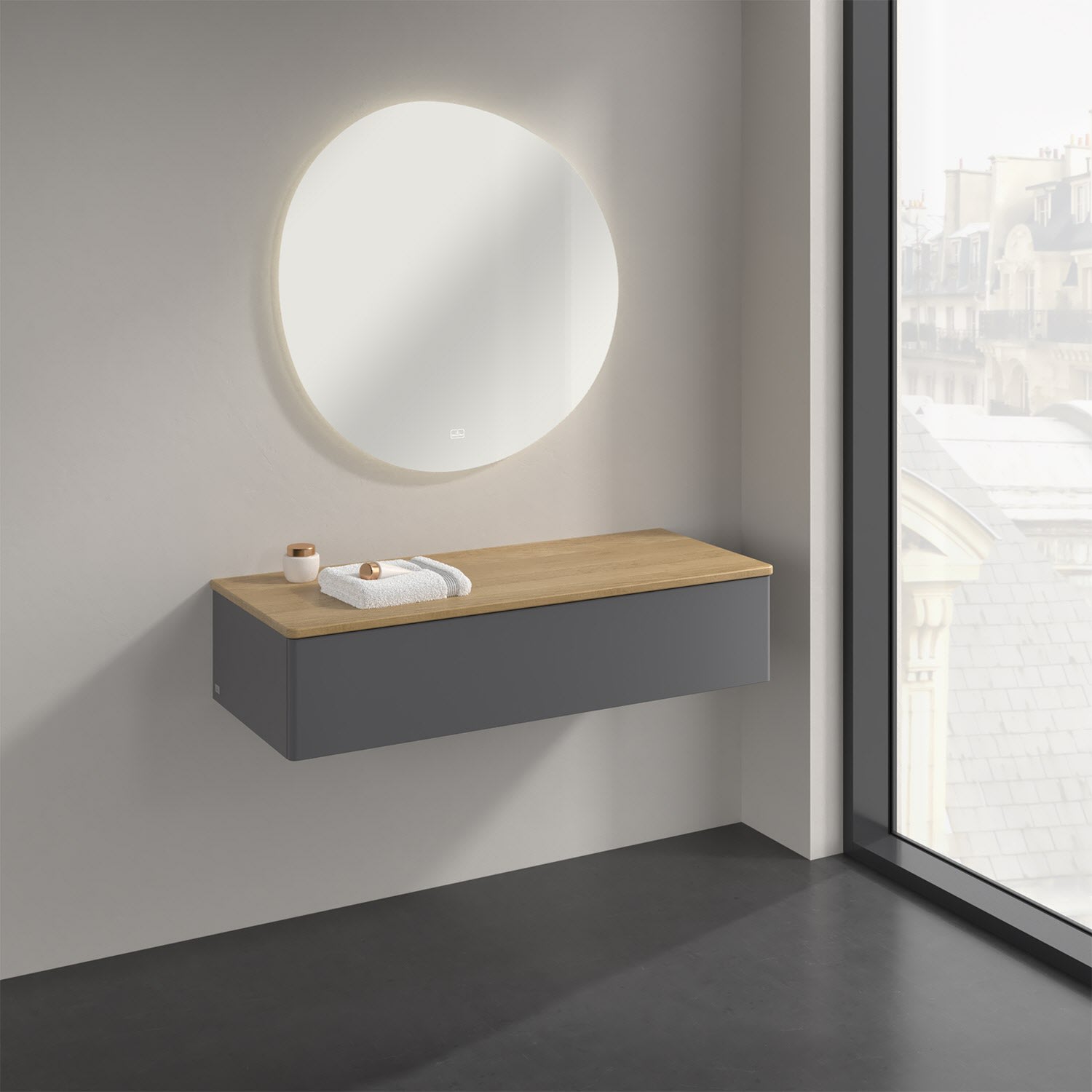 Ein hochwertiges Badmöbel von Villeroy & Boch mit sanfter Formsprache durch abgerundete Kanten: Das wandhängende Sideboard der Kollektion Antao bietet eine ideale Stauraummöglichkeit im Badezimmer und ist auch optisch ein Blickfang. Es verfügt über einen grifflosen Auszug mit Push-to-Open Funktion. Er lässt sich in seiner vollen Tiefe öffnen und ermöglicht so großzügigen Stauraum für diverse Utensilien, über die man nicht den Überblick verliert. Der integrierte Antirutschboden sorgt dabei dafür, dass der Inhalt sicher und fest steht. Handtücher oder auch Dekoartikel finden auf der Ablagefläche bequem ihren Platz. Für eine besonders leichte Pflege sorgt die mehrschichtig deckend lackierte Oberfläche. Bei der Ausführung in Massivholz wird dank des verarbeiteten Massivholzes jedes Möbel zu einem Unikat, das sich durch das lebendige Naturmaterial durch seine einzigartige Struktur und Maserung auszeichnet.