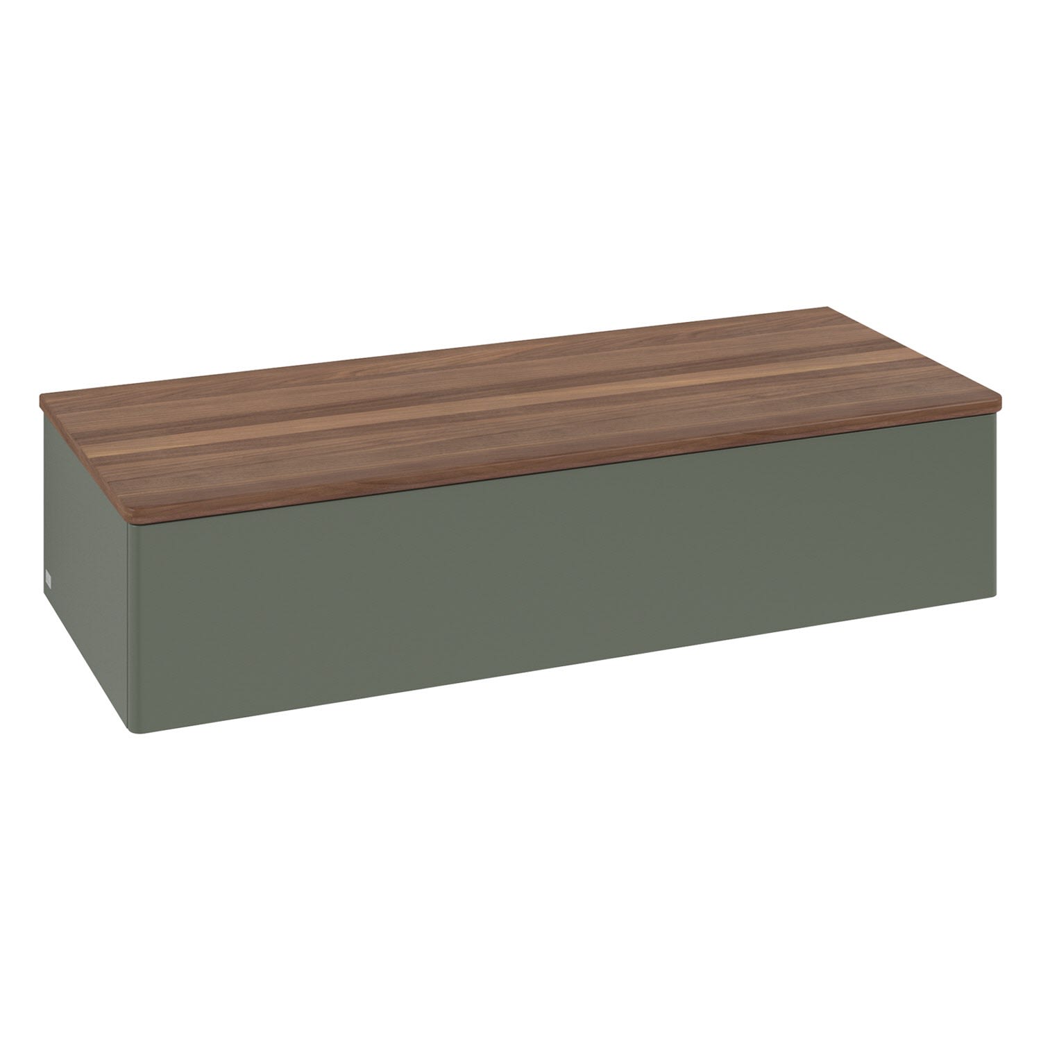 Ein hochwertiges Badmöbel von Villeroy & Boch mit sanfter Formsprache durch abgerundete Kanten: Das wandhängende Sideboard der Kollektion Antao bietet eine ideale Stauraummöglichkeit im Badezimmer und ist auch optisch ein Blickfang. Es verfügt über einen grifflosen Auszug mit Push-to-Open Funktion. Er lässt sich in seiner vollen Tiefe öffnen und ermöglicht so großzügigen Stauraum für diverse Utensilien, über die man nicht den Überblick verliert. Der integrierte Antirutschboden sorgt dabei dafür, dass der Inhalt sicher und fest steht. Handtücher oder auch Dekoartikel finden auf der Ablagefläche bequem ihren Platz. Für eine besonders leichte Pflege sorgt die mehrschichtig deckend lackierte Oberfläche. Bei der Ausführung in Massivholz wird dank des verarbeiteten Massivholzes jedes Möbel zu einem Unikat, das sich durch das lebendige Naturmaterial durch seine einzigartige Struktur und Maserung auszeichnet.