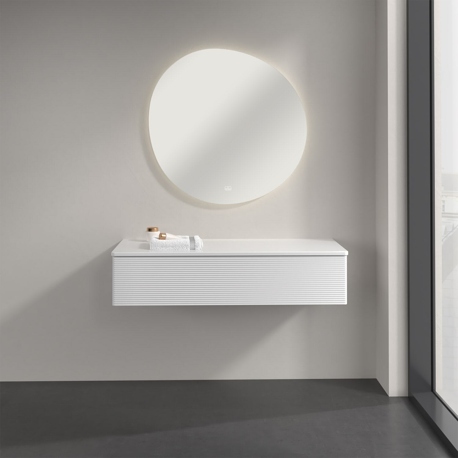 Ein hochwertiges Badmöbel von Villeroy & Boch mit sanfter Formsprache durch abgerundete Kanten: Das wandhängende Sideboard der Kollektion Antao bietet eine ideale Stauraummöglichkeit im Badezimmer und ist auch optisch ein Blickfang. Es verfügt über einen grifflosen Auszug mit strukturierter Front und Push-to-Open Funktion. Er lässt sich in seiner vollen Tiefe öffnen und ermöglicht so großzügigen Stauraum für diverse Utensilien, über die man nicht den Überblick verliert. Der integrierte Antirutschboden sorgt dabei dafür, dass der Inhalt sicher und fest steht. Handtücher oder auch Dekoartikel finden auf der Ablagefläche bequem ihren Platz. Für eine besonders leichte Pflege sorgt die mehrschichtig deckend lackierte Oberfläche.