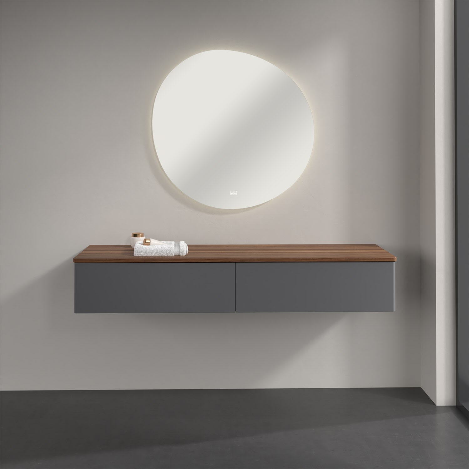 Ein hochwertiges Badmöbel von Villeroy & Boch mit sanfter Formsprache durch abgerundete Kanten: Das wandhängende Sideboard der Kollektion Antao bietet eine ideale Stauraummöglichkeit im Badezimmer und ist auch optisch ein Blickfang. Es verfügt über zwei grifflose Auszüge mit Push-to-Open Funktion. Sie lassen sich in ihrer vollen Tiefe öffnen und ermöglichen so großzügigen Stauraum für diverse Utensilien, über die man nicht den Überblick verliert. Der integrierte Antirutschboden sorgt dabei dafür, dass der Inhalt sicher und fest steht. Handtücher oder auch Dekoartikel lassen sich auf der großzügigen Ablagefläche bequem ablegen. Für eine besonders leichte Pflege sorgt die mehrschichtig deckend lackierte Oberfläche. Bei der Ausführung in Massivholz wird dank des verarbeiteten Massivholzes jedes Möbel zu einem Unikat, das sich durch das lebendige Naturmaterial durch seine einzigartige Struktur und Maserung auszeichnet.