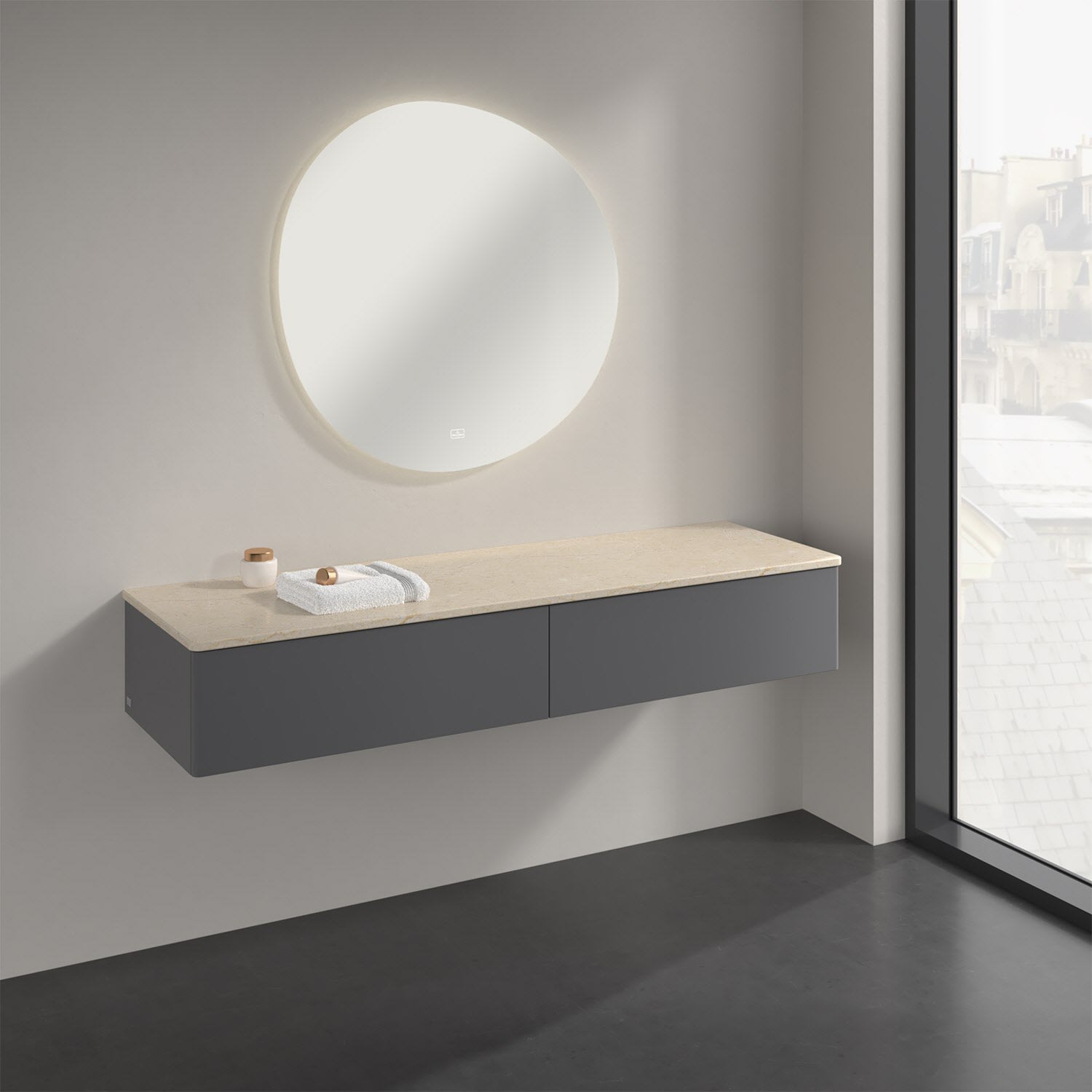 Ein hochwertiges Badmöbel von Villeroy & Boch mit sanfter Formsprache durch abgerundete Kanten: Das wandhängende Sideboard der Kollektion Antao bietet eine ideale Stauraummöglichkeit im Badezimmer und ist auch optisch ein Blickfang. Es verfügt über zwei grifflose Auszüge mit Push-to-Open Funktion. Sie lassen sich in ihrer vollen Tiefe öffnen und ermöglichen so großzügigen Stauraum für diverse Utensilien, über die man nicht den Überblick verliert. Der integrierte Antirutschboden sorgt dabei dafür, dass der Inhalt sicher und fest steht. Handtücher oder auch Dekoartikel lassen sich auf der großzügigen Ablagefläche bequem ablegen. Für eine besonders leichte Pflege sorgt die mehrschichtig deckend lackierte Oberfläche. Bei der Ausführung in Massivholz wird dank des verarbeiteten Massivholzes jedes Möbel zu einem Unikat, das sich durch das lebendige Naturmaterial durch seine einzigartige Struktur und Maserung auszeichnet.