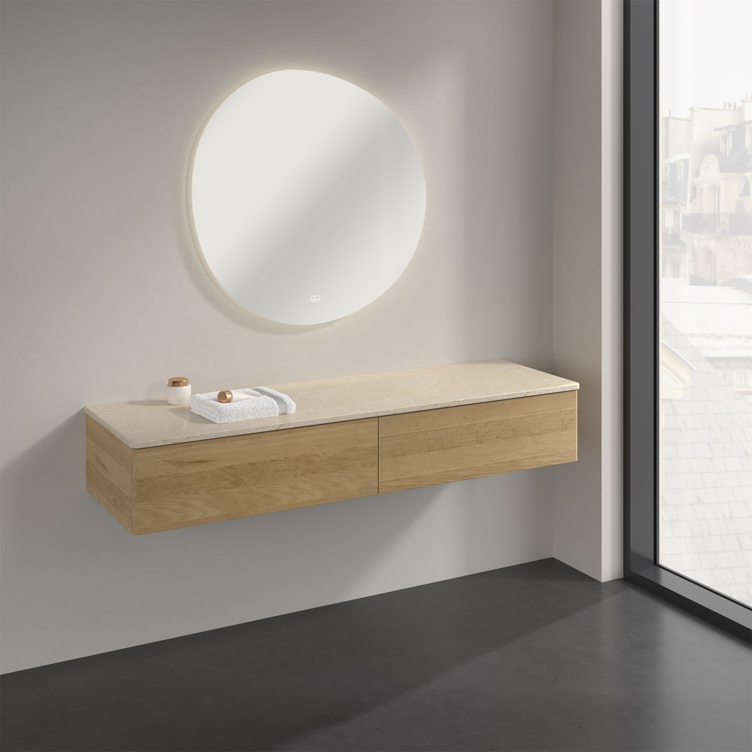 Ein hochwertiges Badmöbel von Villeroy & Boch mit sanfter Formsprache durch abgerundete Kanten: Das wandhängende Sideboard der Kollektion Antao bietet eine ideale Stauraummöglichkeit im Badezimmer und ist auch optisch ein Blickfang. Es verfügt über zwei grifflose Auszüge mit Push-to-Open Funktion. Sie lassen sich in ihrer vollen Tiefe öffnen und ermöglichen so großzügigen Stauraum für diverse Utensilien, über die man nicht den Überblick verliert. Der integrierte Antirutschboden sorgt dabei dafür, dass der Inhalt sicher und fest steht. Handtücher oder auch Dekoartikel lassen sich auf der großzügigen Ablagefläche bequem ablegen. Für eine besonders leichte Pflege sorgt die mehrschichtig deckend lackierte Oberfläche. Bei der Ausführung in Massivholz wird dank des verarbeiteten Massivholzes jedes Möbel zu einem Unikat, das sich durch das lebendige Naturmaterial durch seine einzigartige Struktur und Maserung auszeichnet.
