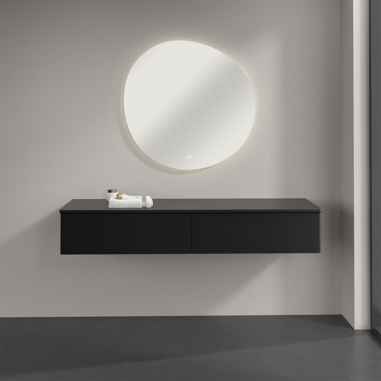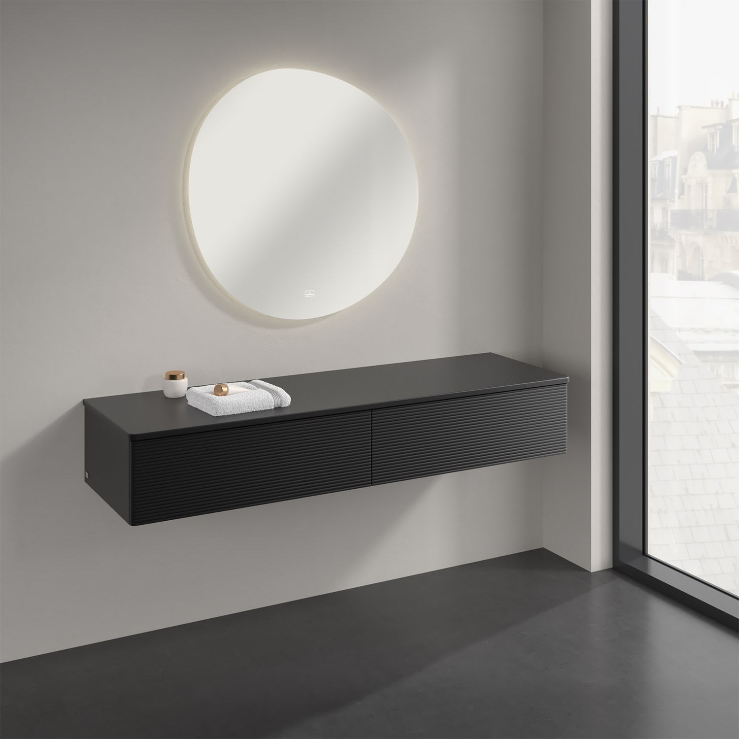 Ein hochwertiges Badmöbel von Villeroy & Boch mit sanfter Formsprache durch abgerundete Kanten: Das wandhängende Sideboard der Kollektion Antao bietet eine ideale Stauraummöglichkeit im Badezimmer und ist auch optisch ein Blickfang. Es verfügt über zwei grifflose Auszüge mit strukturierten Fronten und Push-to-Open Funktion. Sie lassen sich in ihrer vollen Tiefe öffnen und ermöglichen so großzügigen Stauraum für diverse Utensilien, über die man nicht den Überblick verliert. Der integrierte Antirutschboden sorgt dabei dafür, dass der Inhalt sicher und fest steht. Handtücher oder auch Dekoartikel lassen sich auf der großzügigen Ablagefläche bequem ablegen. Für eine besonders leichte Pflege sorgt die mehrschichtig deckend lackierte Oberfläche.