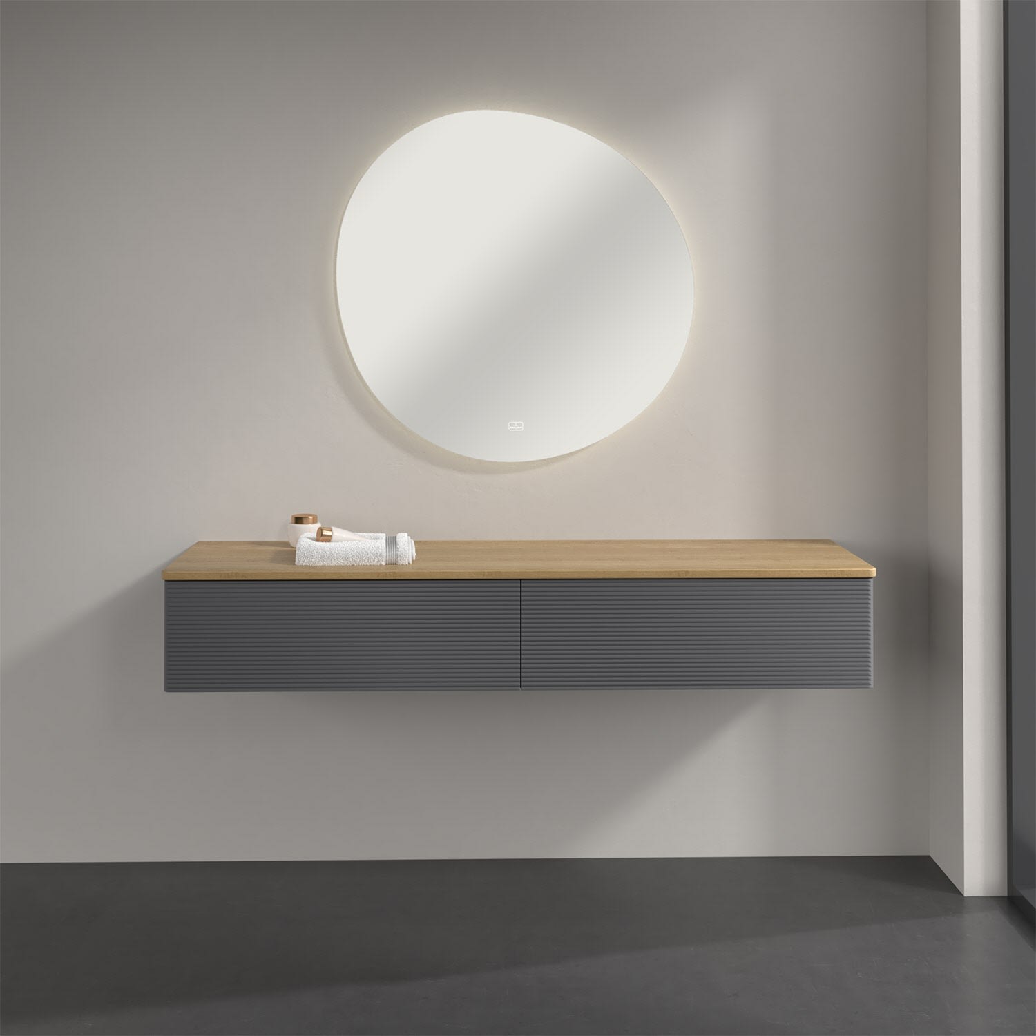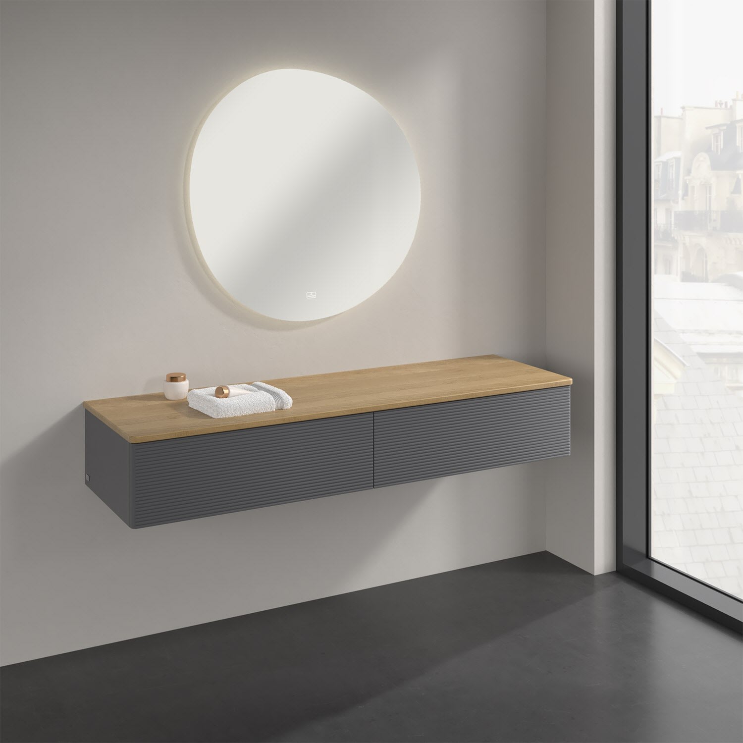 Ein hochwertiges Badmöbel von Villeroy & Boch mit sanfter Formsprache durch abgerundete Kanten: Das wandhängende Sideboard der Kollektion Antao bietet eine ideale Stauraummöglichkeit im Badezimmer und ist auch optisch ein Blickfang. Es verfügt über zwei grifflose Auszüge mit strukturierten Fronten und Push-to-Open Funktion. Sie lassen sich in ihrer vollen Tiefe öffnen und ermöglichen so großzügigen Stauraum für diverse Utensilien, über die man nicht den Überblick verliert. Der integrierte Antirutschboden sorgt dabei dafür, dass der Inhalt sicher und fest steht. Handtücher oder auch Dekoartikel lassen sich auf der großzügigen Ablagefläche bequem ablegen. Für eine besonders leichte Pflege sorgt die mehrschichtig deckend lackierte Oberfläche. Bei der Ausführung in Massivholz wird dank des verarbeiteten Massivholzes jedes Möbel zu einem Unikat, das sich durch das lebendige Naturmaterial durch seine einzigartige Struktur und Maserung auszeichnet.