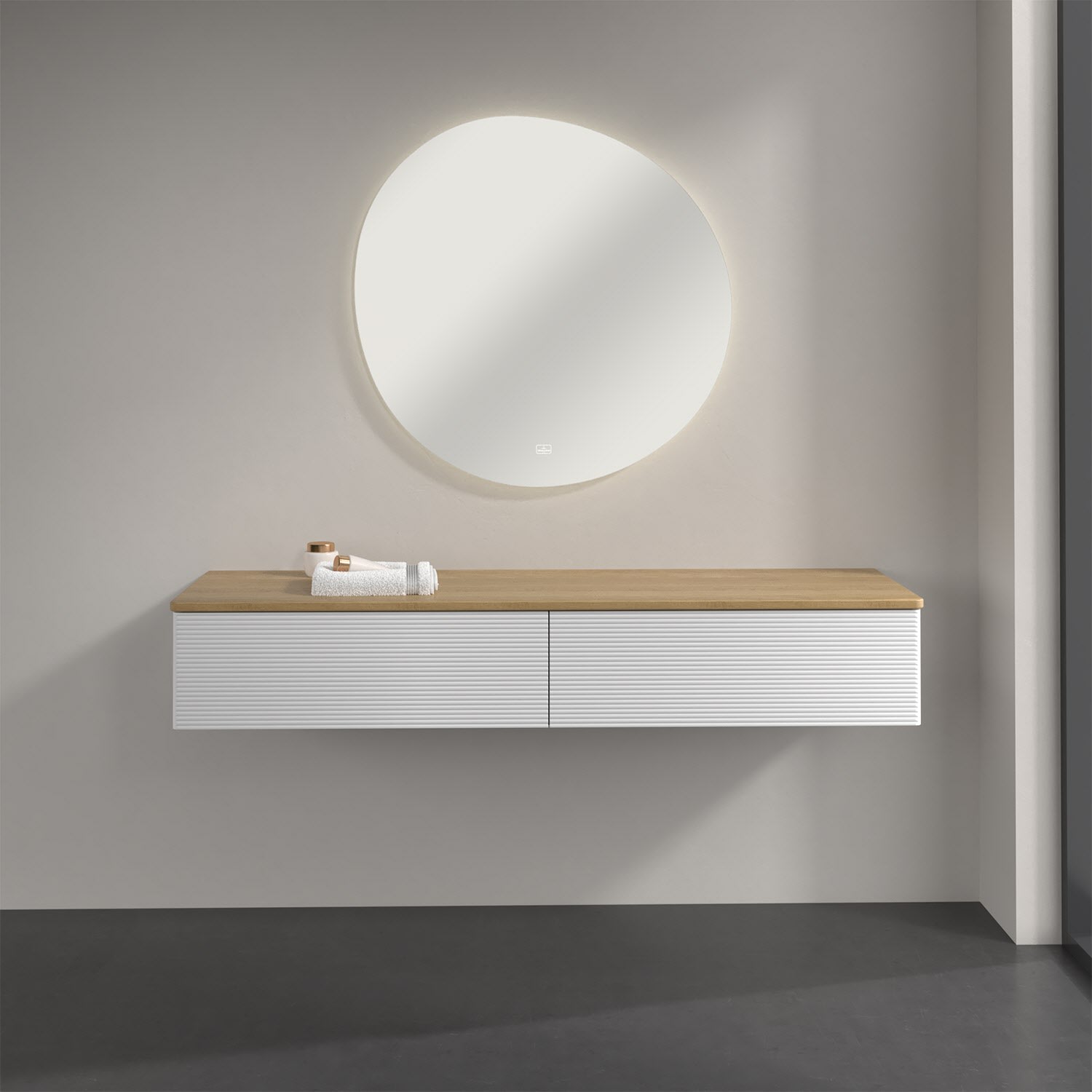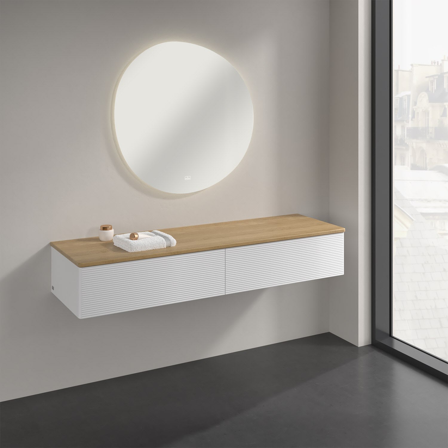 Ein hochwertiges Badmöbel von Villeroy & Boch mit sanfter Formsprache durch abgerundete Kanten: Das wandhängende Sideboard der Kollektion Antao bietet eine ideale Stauraummöglichkeit im Badezimmer und ist auch optisch ein Blickfang. Es verfügt über zwei grifflose Auszüge mit strukturierten Fronten und Push-to-Open Funktion. Sie lassen sich in ihrer vollen Tiefe öffnen und ermöglichen so großzügigen Stauraum für diverse Utensilien, über die man nicht den Überblick verliert. Der integrierte Antirutschboden sorgt dabei dafür, dass der Inhalt sicher und fest steht. Handtücher oder auch Dekoartikel lassen sich auf der großzügigen Ablagefläche bequem ablegen. Für eine besonders leichte Pflege sorgt die mehrschichtig deckend lackierte Oberfläche. Bei der Ausführung in Massivholz wird dank des verarbeiteten Massivholzes jedes Möbel zu einem Unikat, das sich durch das lebendige Naturmaterial durch seine einzigartige Struktur und Maserung auszeichnet.