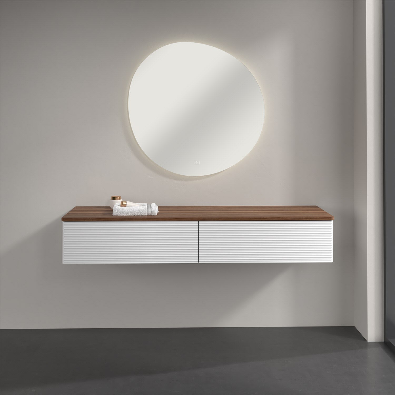 Ein hochwertiges Badmöbel von Villeroy & Boch mit sanfter Formsprache durch abgerundete Kanten: Das wandhängende Sideboard der Kollektion Antao bietet eine ideale Stauraummöglichkeit im Badezimmer und ist auch optisch ein Blickfang. Es verfügt über zwei grifflose Auszüge mit strukturierten Fronten und Push-to-Open Funktion. Sie lassen sich in ihrer vollen Tiefe öffnen und ermöglichen so großzügigen Stauraum für diverse Utensilien, über die man nicht den Überblick verliert. Der integrierte Antirutschboden sorgt dabei dafür, dass der Inhalt sicher und fest steht. Handtücher oder auch Dekoartikel lassen sich auf der großzügigen Ablagefläche bequem ablegen. Für eine besonders leichte Pflege sorgt die mehrschichtig deckend lackierte Oberfläche. Bei der Ausführung in Massivholz wird dank des verarbeiteten Massivholzes jedes Möbel zu einem Unikat, das sich durch das lebendige Naturmaterial durch seine einzigartige Struktur und Maserung auszeichnet.
