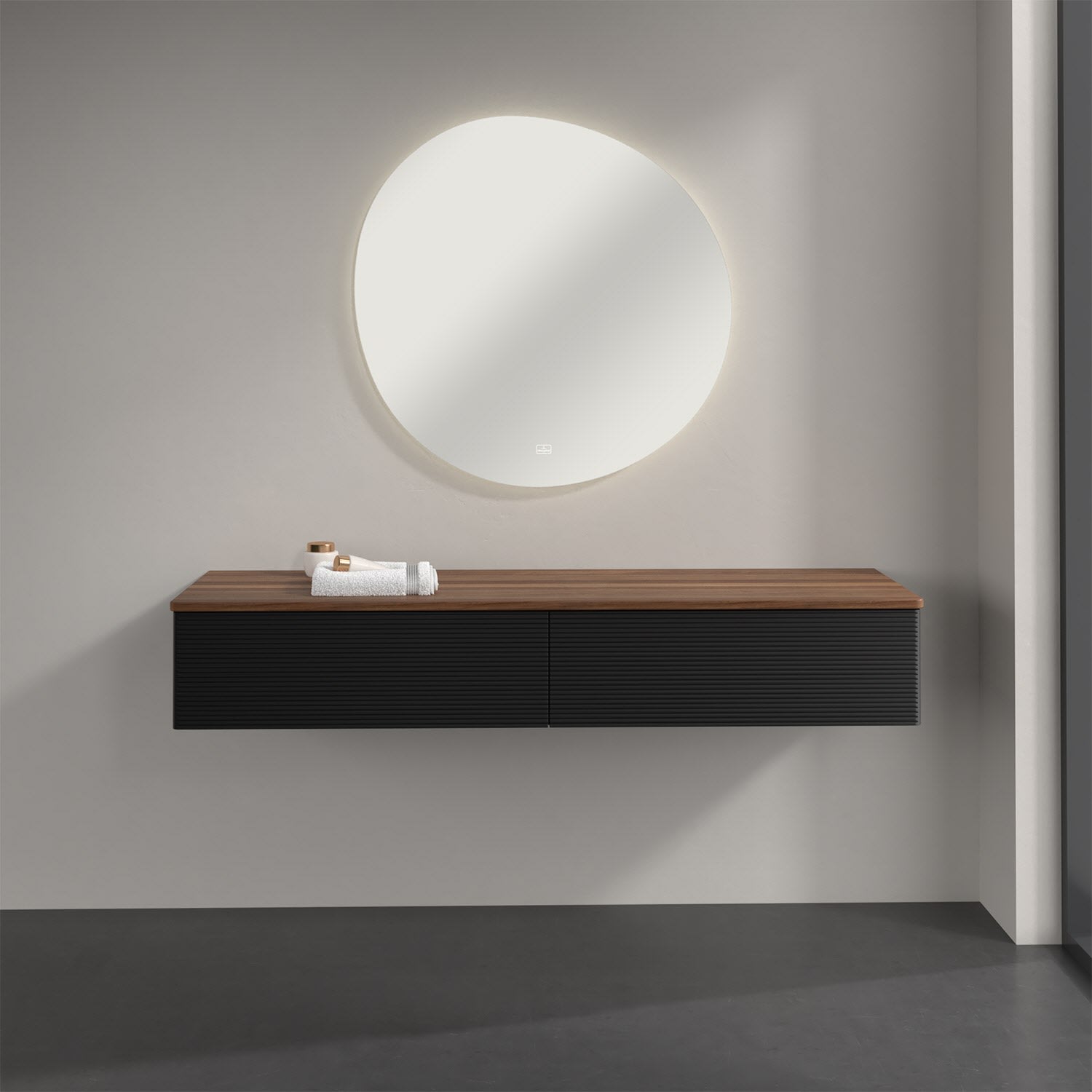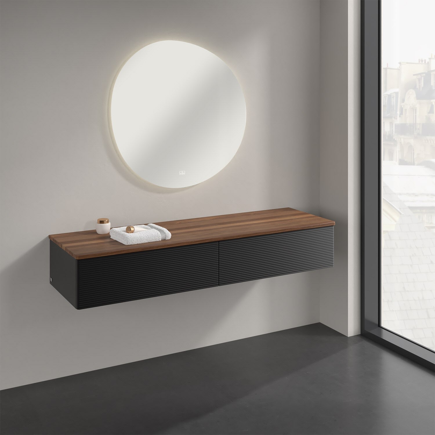 Ein hochwertiges Badmöbel von Villeroy & Boch mit sanfter Formsprache durch abgerundete Kanten: Das wandhängende Sideboard der Kollektion Antao bietet eine ideale Stauraummöglichkeit im Badezimmer und ist auch optisch ein Blickfang. Es verfügt über zwei grifflose Auszüge mit strukturierten Fronten und Push-to-Open Funktion. Sie lassen sich in ihrer vollen Tiefe öffnen und ermöglichen so großzügigen Stauraum für diverse Utensilien, über die man nicht den Überblick verliert. Der integrierte Antirutschboden sorgt dabei dafür, dass der Inhalt sicher und fest steht. Handtücher oder auch Dekoartikel lassen sich auf der großzügigen Ablagefläche bequem ablegen. Für eine besonders leichte Pflege sorgt die mehrschichtig deckend lackierte Oberfläche. Bei der Ausführung in Massivholz wird dank des verarbeiteten Massivholzes jedes Möbel zu einem Unikat, das sich durch das lebendige Naturmaterial durch seine einzigartige Struktur und Maserung auszeichnet.