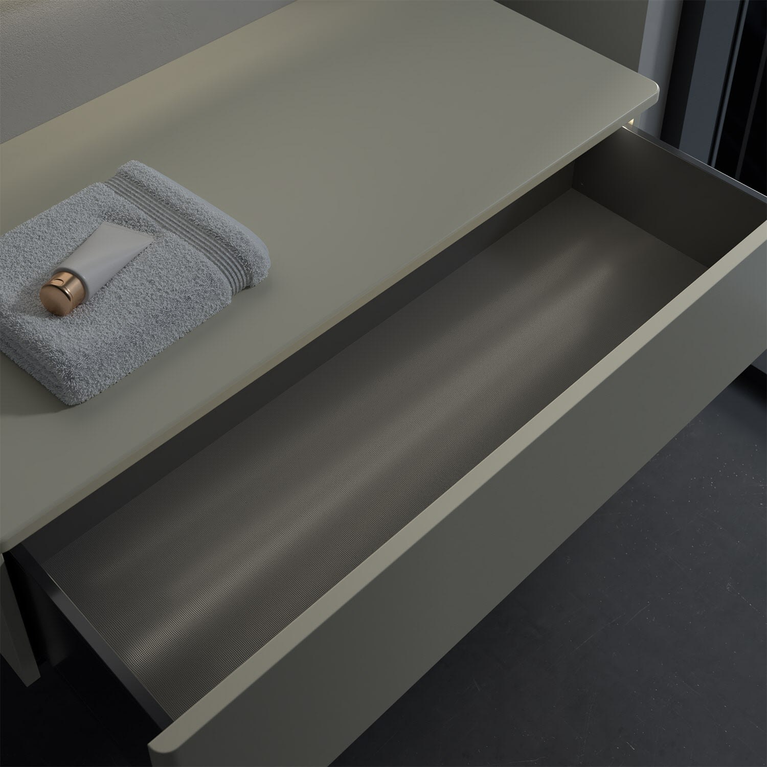 - kein Umfallen oder Verrutschen von Pflegeprodukten in den Schubladen dank rutschhemmendem Boden