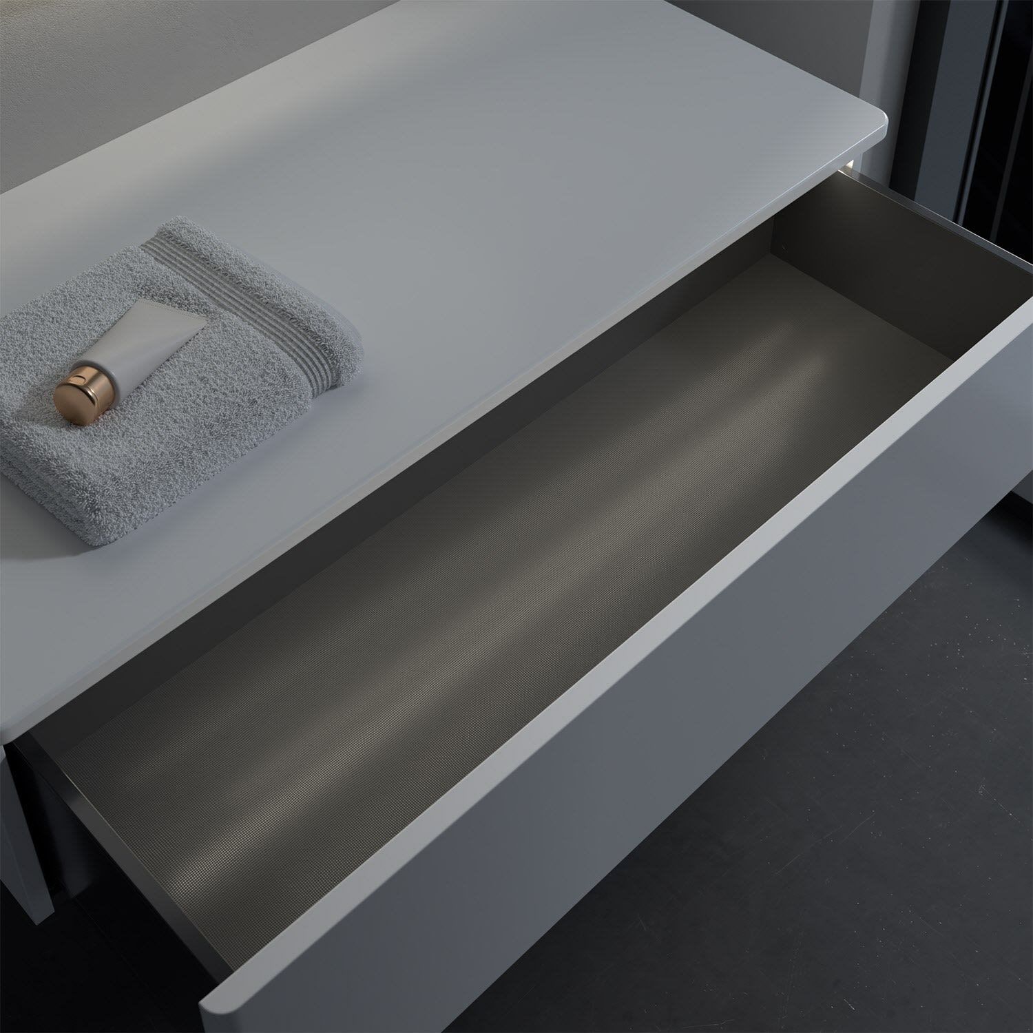 - kein Umfallen oder Verrutschen von Pflegeprodukten in den Schubladen dank rutschhemmendem Boden