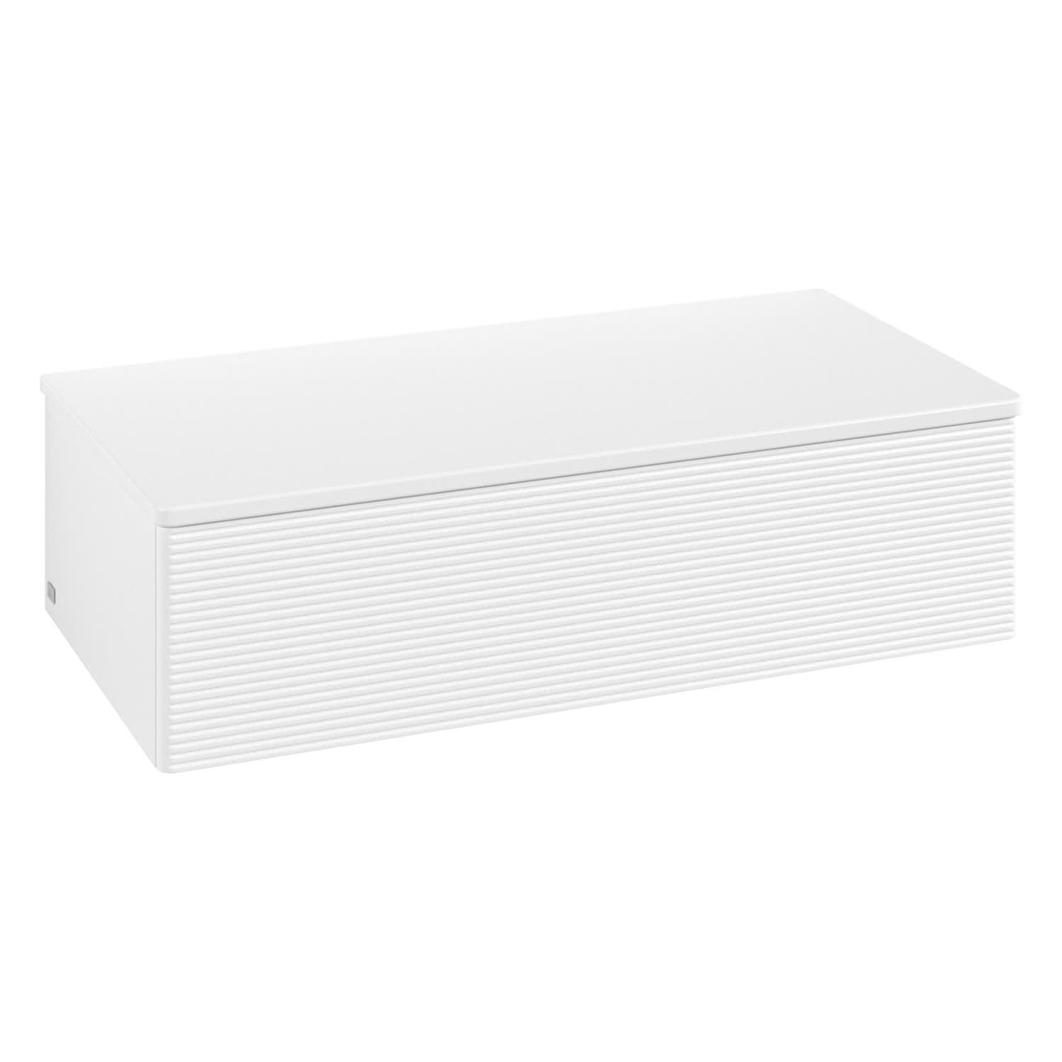 Ein hochwertiges Badmöbel von Villeroy & Boch mit sanfter Formsprache durch abgerundete Kanten: Das wandhängende Sideboard der Kollektion Antao bietet eine ideale Stauraummöglichkeit im Badezimmer und ist auch optisch ein Blickfang. Es verfügt über einen grifflosen Auszug mit strukturierter Front und Push-to-Open Funktion. Er lässt sich in seiner vollen Tiefe öffnen und ermöglicht so großzügigen Stauraum für diverse Utensilien, über die man nicht den Überblick verliert. Erst recht nicht, dank der eingebauten LED-Beleuchtung, die sich automatisch beim Öffnen einschaltet. Der integrierte Antirutschboden sorgt dafür, dass der Inhalt sicher und fest steht. Handtücher oder auch Dekoartikel finden auf der Ablagefläche bequem ihren Platz. Für eine besonders leichte Pflege sorgt die mehrschichtig deckend lackierte Oberfläche.