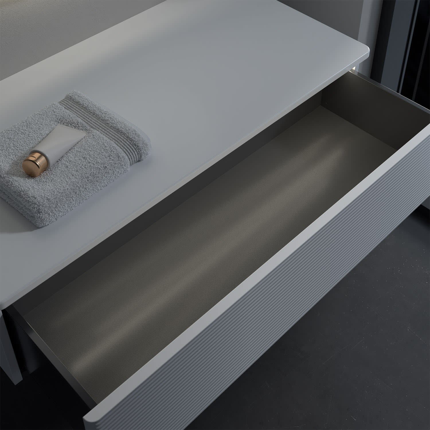 - kein Umfallen oder Verrutschen von Pflegeprodukten in den Schubladen dank rutschhemmendem Boden