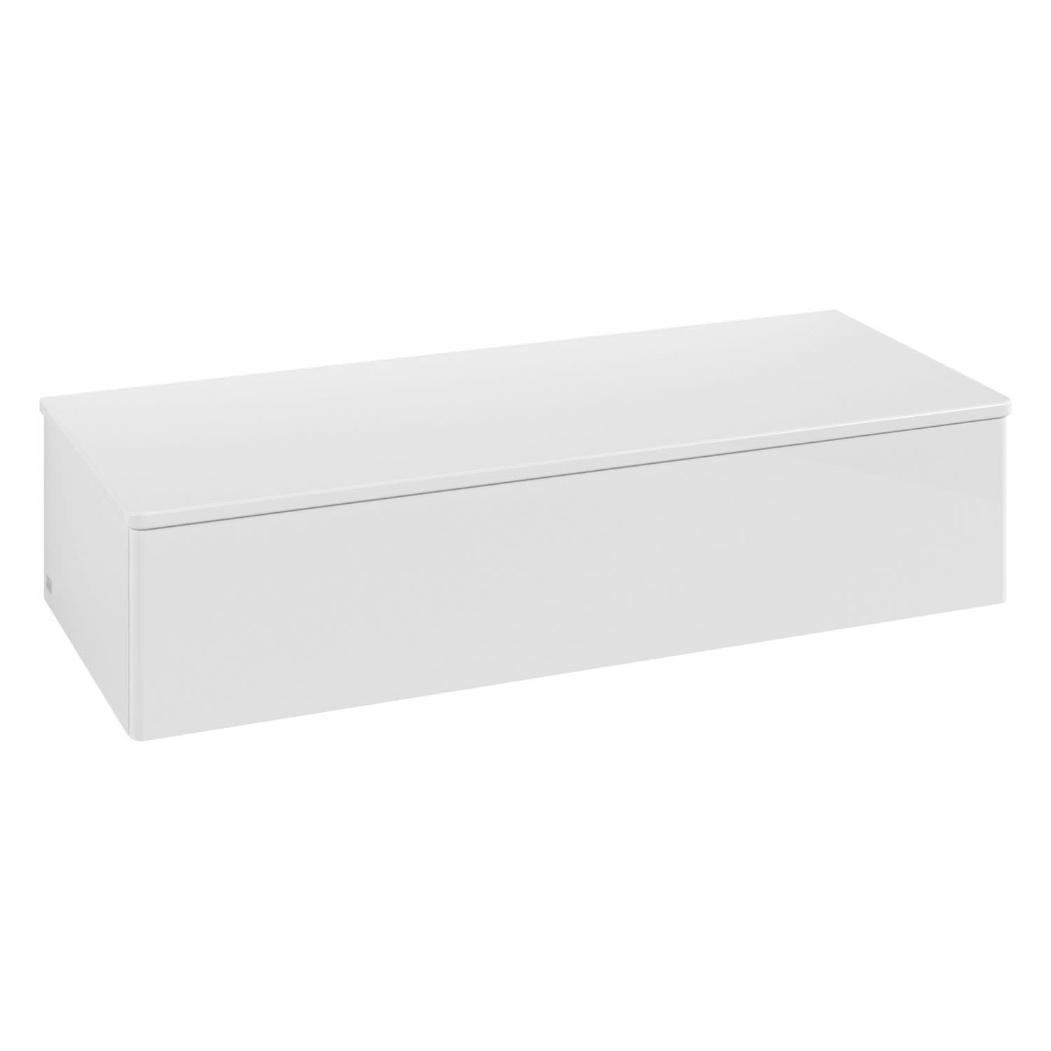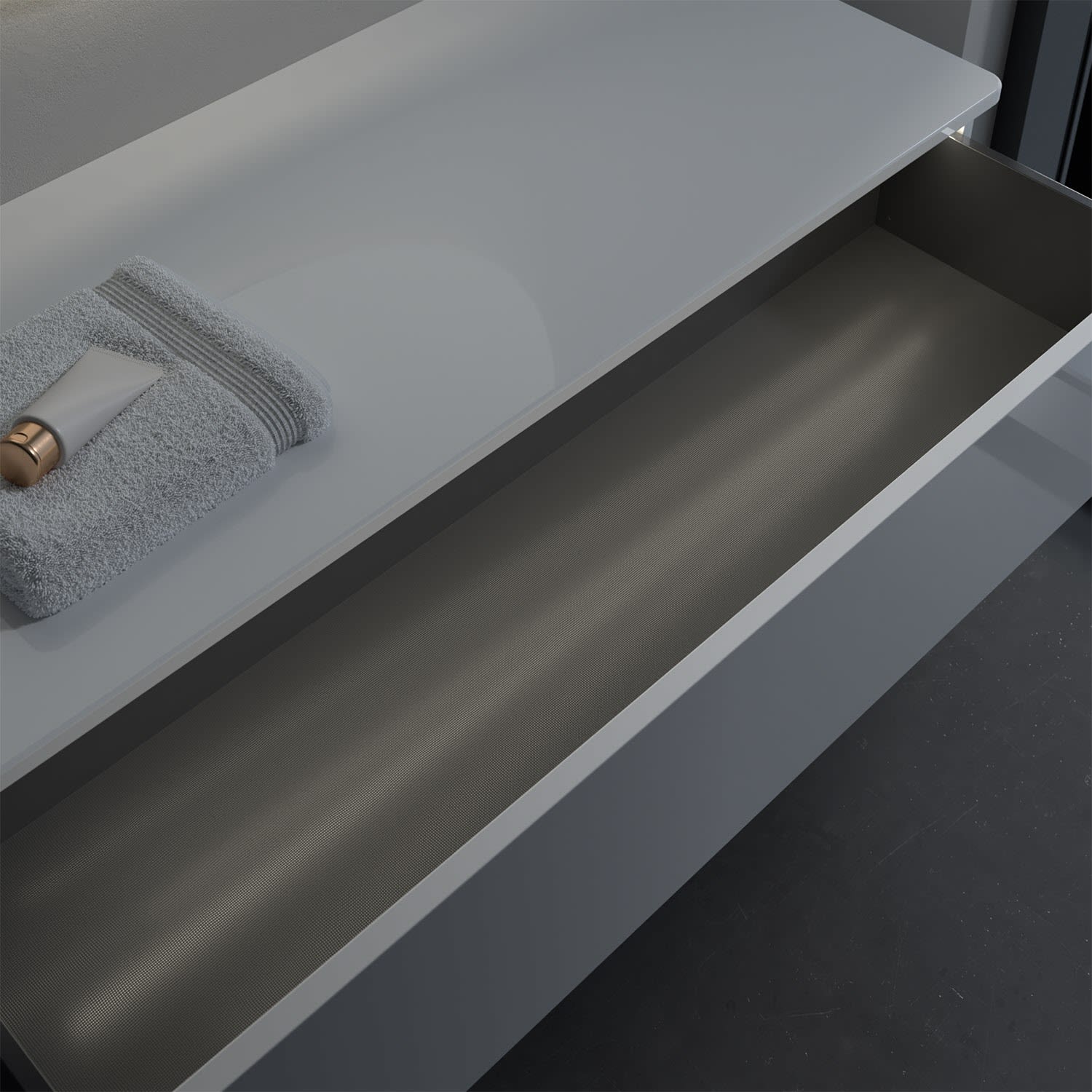 Ein hochwertiges Badmöbel von Villeroy & Boch mit sanfter Formsprache durch abgerundete Kanten: Das wandhängende Sideboard der Kollektion Antao bietet eine ideale Stauraummöglichkeit im Badezimmer und ist auch optisch ein Blickfang. Es verfügt über einen grifflosen Auszug mit Push-to-Open Funktion. Er lässt sich in seiner vollen Tiefe öffnen und ermöglicht so großzügigen Stauraum für diverse Utensilien, über die man nicht den Überblick verliert. Erst recht nicht, dank der eingebauten LED-Beleuchtung, die sich automatisch beim Öffnen einschaltet. Der integrierte Antirutschboden sorgt dafür, dass der Inhalt sicher und fest steht. Handtücher oder auch Dekoartikel finden auf der Ablagefläche bequem ihren Platz. Für eine besonders leichte Pflege sorgt die mehrschichtig deckend lackierte Oberfläche.