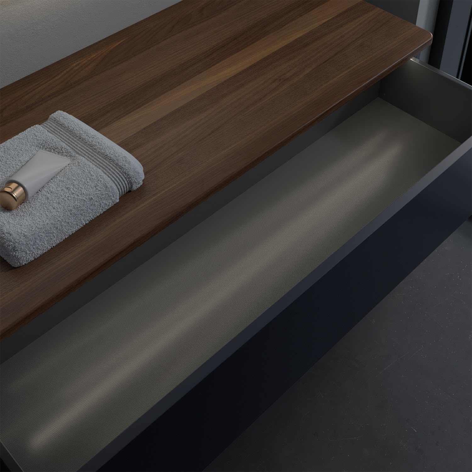 - kein Umfallen oder Verrutschen von Pflegeprodukten in den Schubladen dank rutschhemmendem Boden