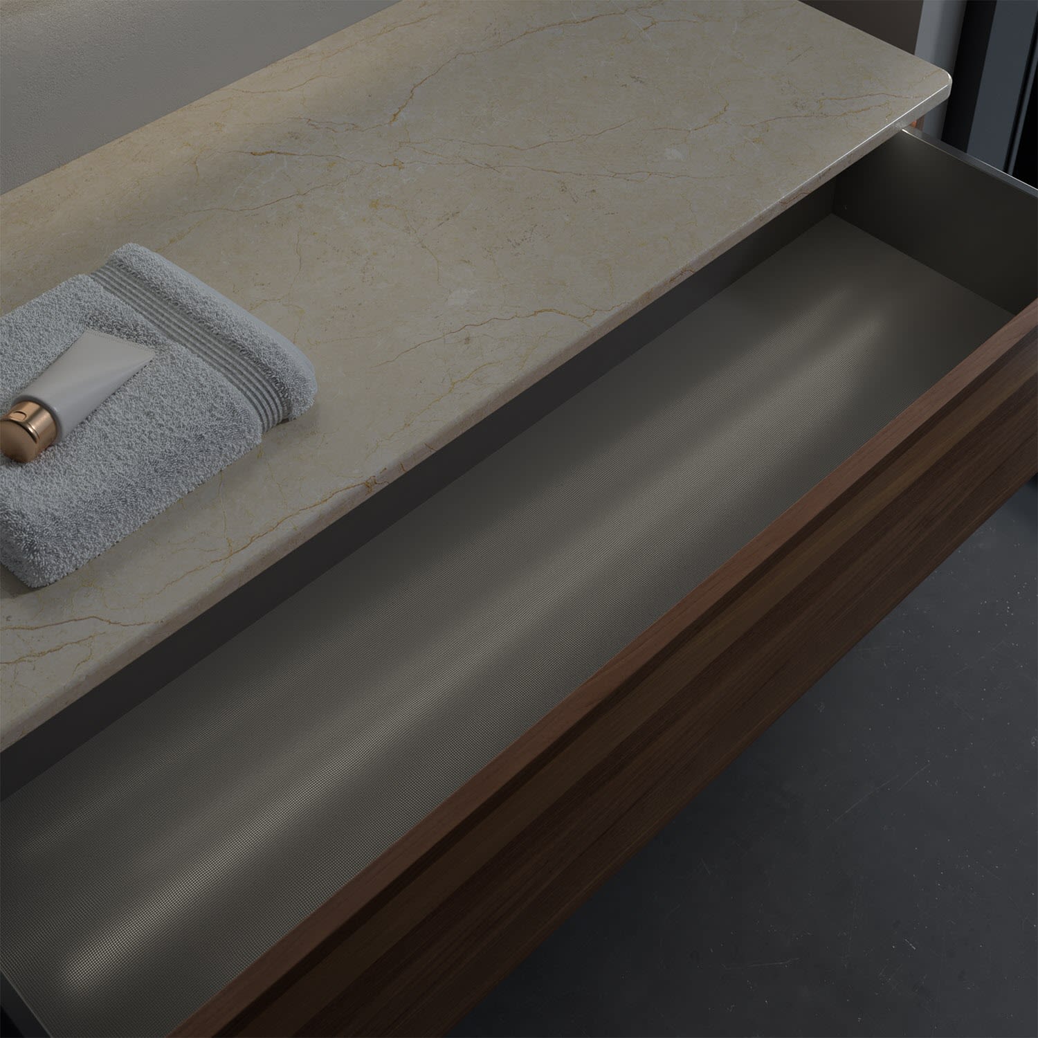 - kein Umfallen oder Verrutschen von Pflegeprodukten in den Schubladen dank rutschhemmendem Boden