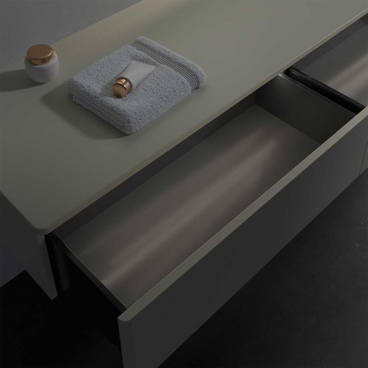 - kein Umfallen oder Verrutschen von Pflegeprodukten in den Schubladen dank rutschhemmendem Boden