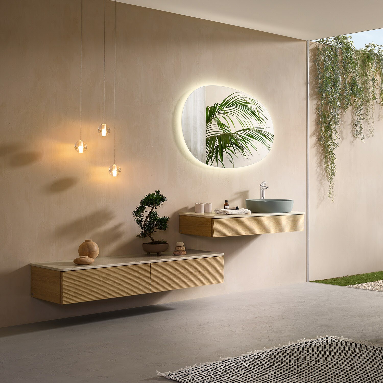 Ein hochwertiges Badmöbel von Villeroy & Boch mit sanfter Formsprache durch abgerundete Kanten: Das wandhängende Sideboard der Kollektion Antao bietet eine ideale Stauraummöglichkeit im Badezimmer und ist auch optisch ein Blickfang. Es verfügt über zwei grifflose Auszüge mit strukturierten Fronten und Push-to-Open Funktion. Er lässt sich in seiner vollen Tiefe öffnen und ermöglicht so großzügigen Stauraum für diverse Utensilien, über die man nicht den Überblick verliert. Erst recht nicht, dank der eingebauten LED-Beleuchtung, die sich automatisch beim Öffnen einschaltet. Der integrierte Antirutschboden sorgt dafür, dass der Inhalt sicher und fest steht. Handtücher oder auch Dekoartikel finden auf der Ablagefläche bequem ihren Platz. Für eine besonders leichte Pflege sorgt die mehrschichtig deckend lackierte Oberfläche. Bei der Ausführung in Massivholz wird dank des verarbeiteten Massivholzes jedes Möbel zu einem Unikat, das sich durch das lebendige Naturmaterial durch seine einzigartige Struktur und Maserung auszeichnet.