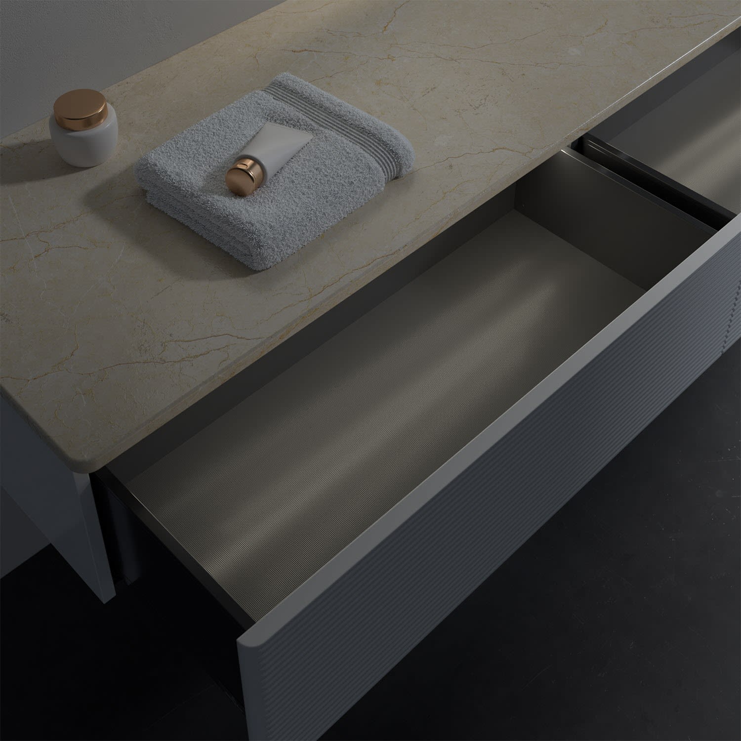 - kein Umfallen oder Verrutschen von Pflegeprodukten in den Schubladen dank rutschhemmendem Boden