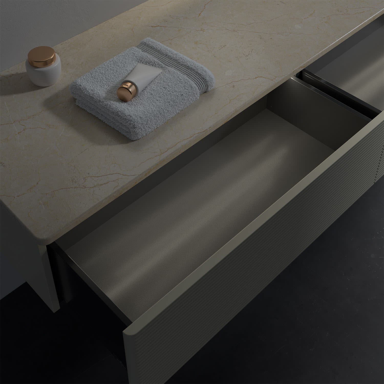 - kein Umfallen oder Verrutschen von Pflegeprodukten in den Schubladen dank rutschhemmendem Boden