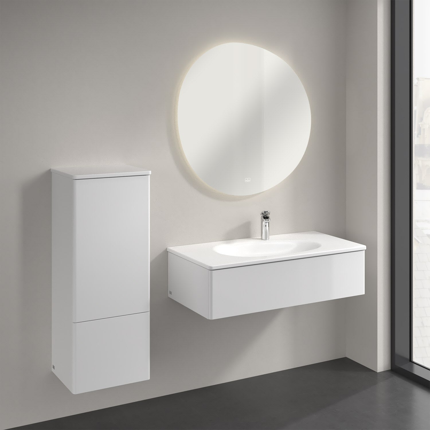 Villeroy & Boch Antao Mittelschrank 41,4 x 103,9 cm, 1 Tür links, Fronten ohne Struktur, mit LED-Licht