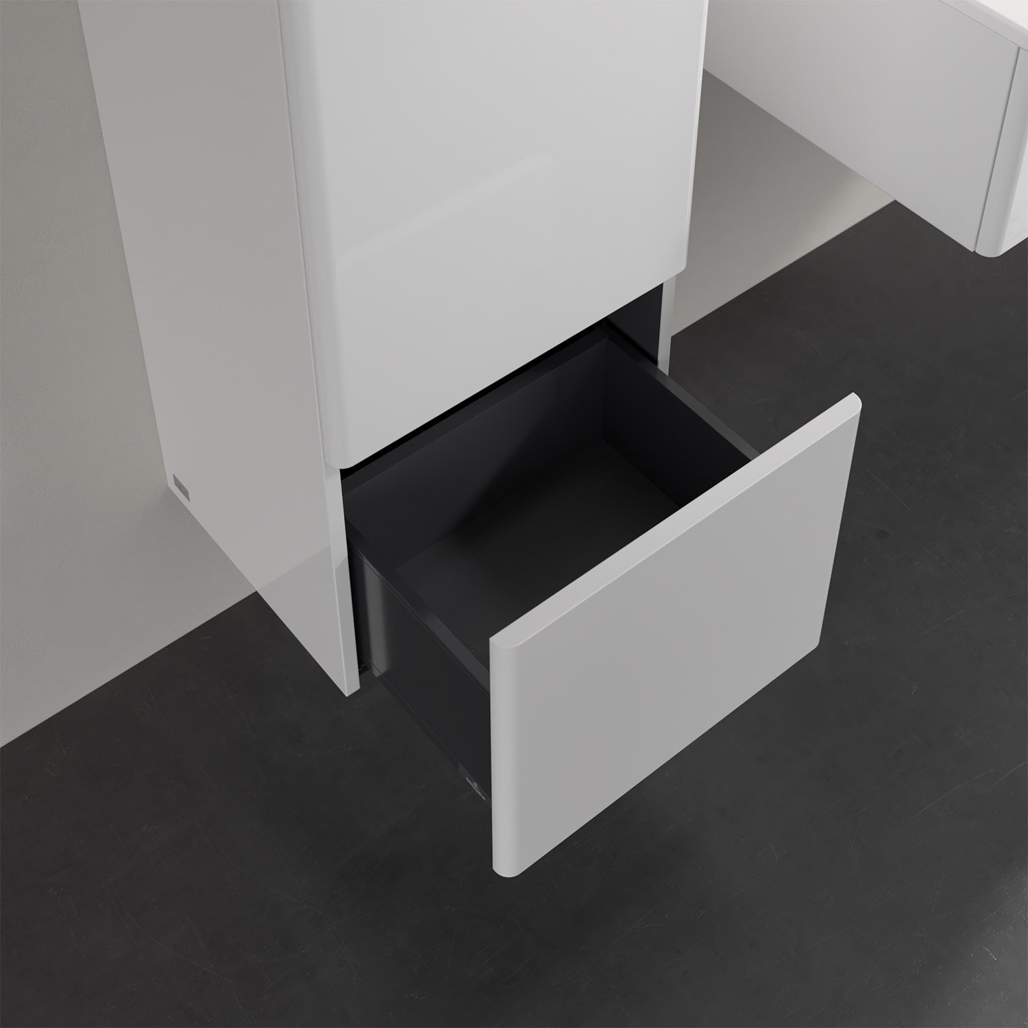 - kein Umfallen oder Verrutschen von Pflegeprodukten in der Schublade dank rutschhemmendem Boden