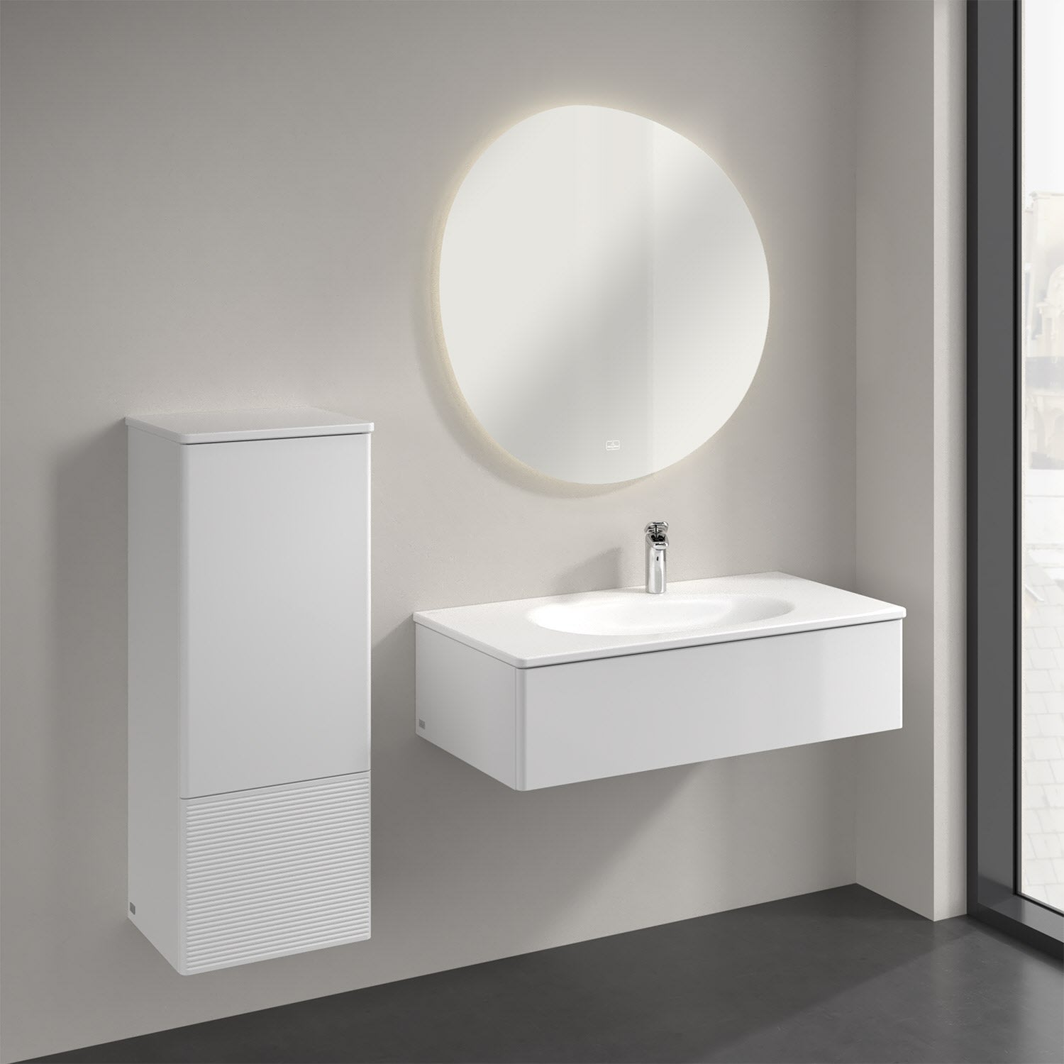 Villeroy & Boch Antao Mittelschrank 41,4 x 103,9 cm, 1 Tür links, Fronten mit Struktur, mit LED-Licht