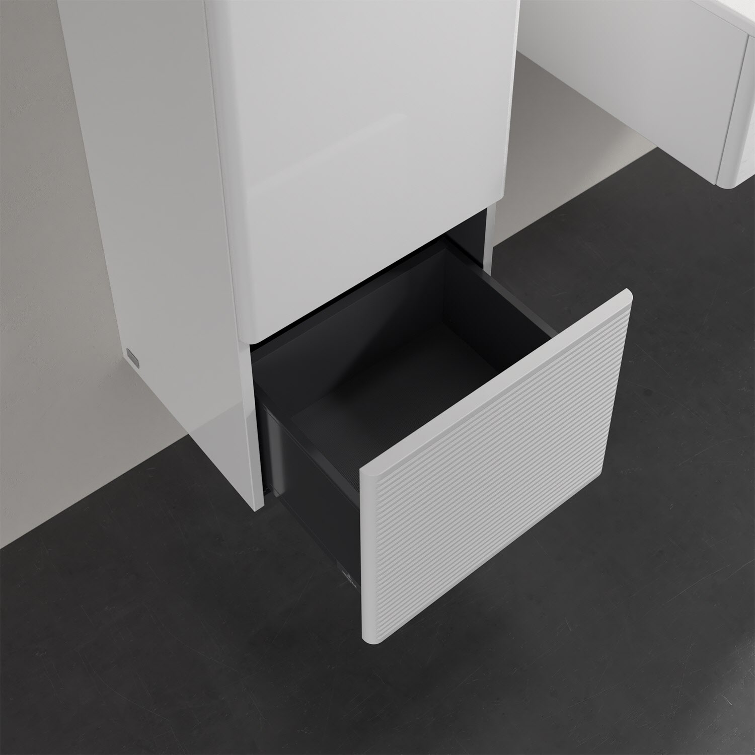 - kein Umfallen oder Verrutschen von Pflegeprodukten in der Schublade dank rutschhemmendem Boden