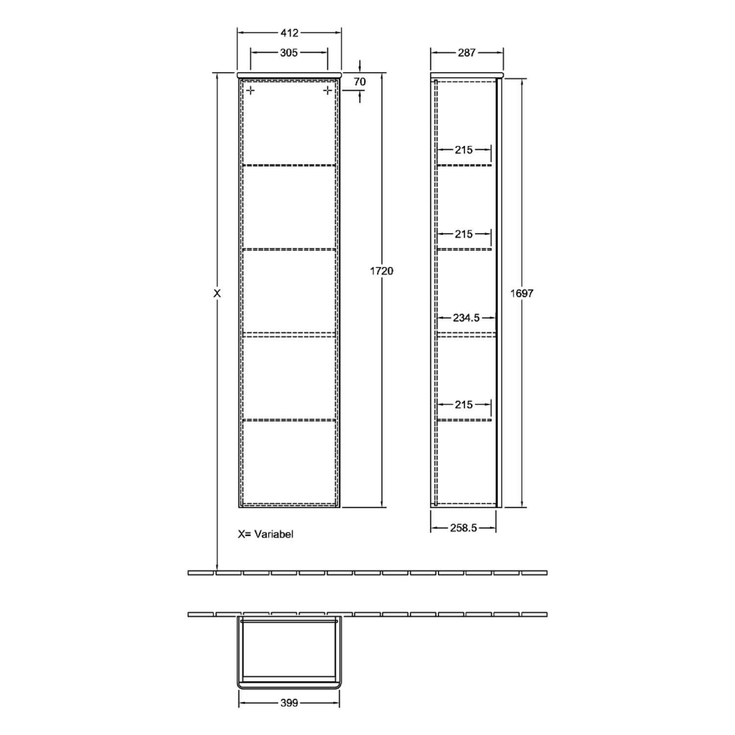 Villeroy & Boch Antao Hochschrank 41,4 x 171,9 cm, 1 Tür rechts, Front ohne Struktur