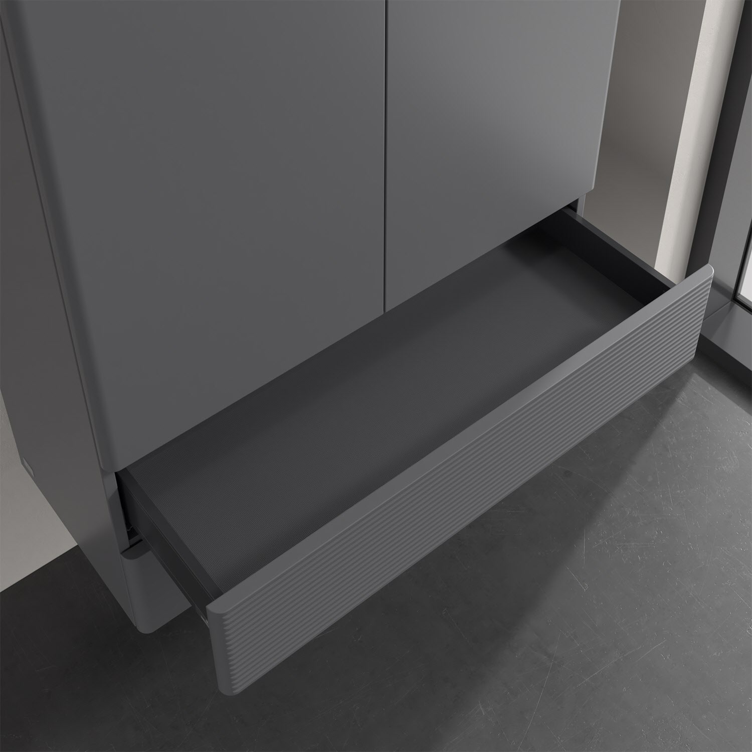 - kein Umfallen oder Verrutschen von Pflegeprodukten in den Schubladen dank rutschhemmendem Boden