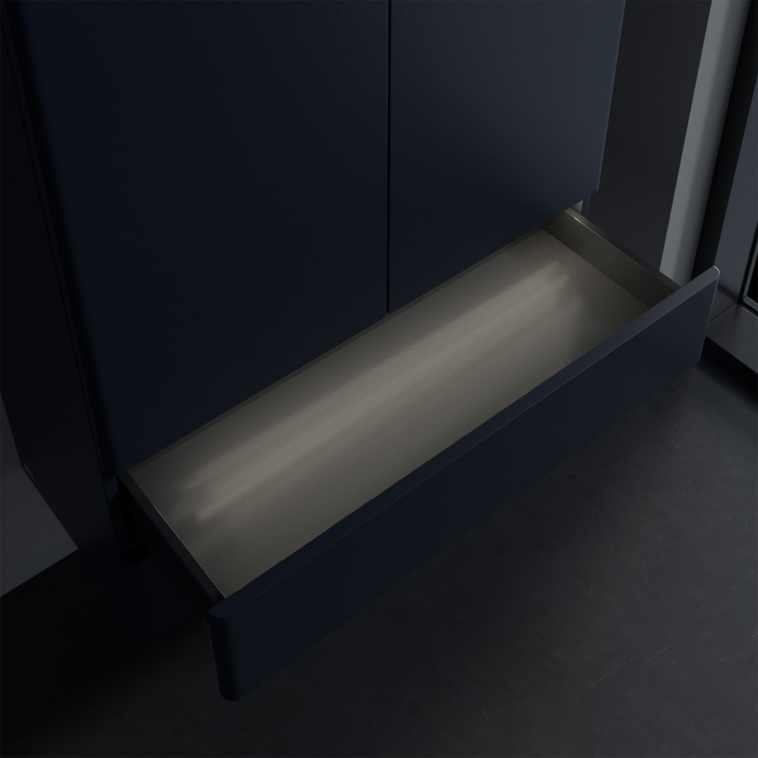 - kein Umfallen oder Verrutschen von Pflegeprodukten in den Schubladen dank rutschhemmendem Boden