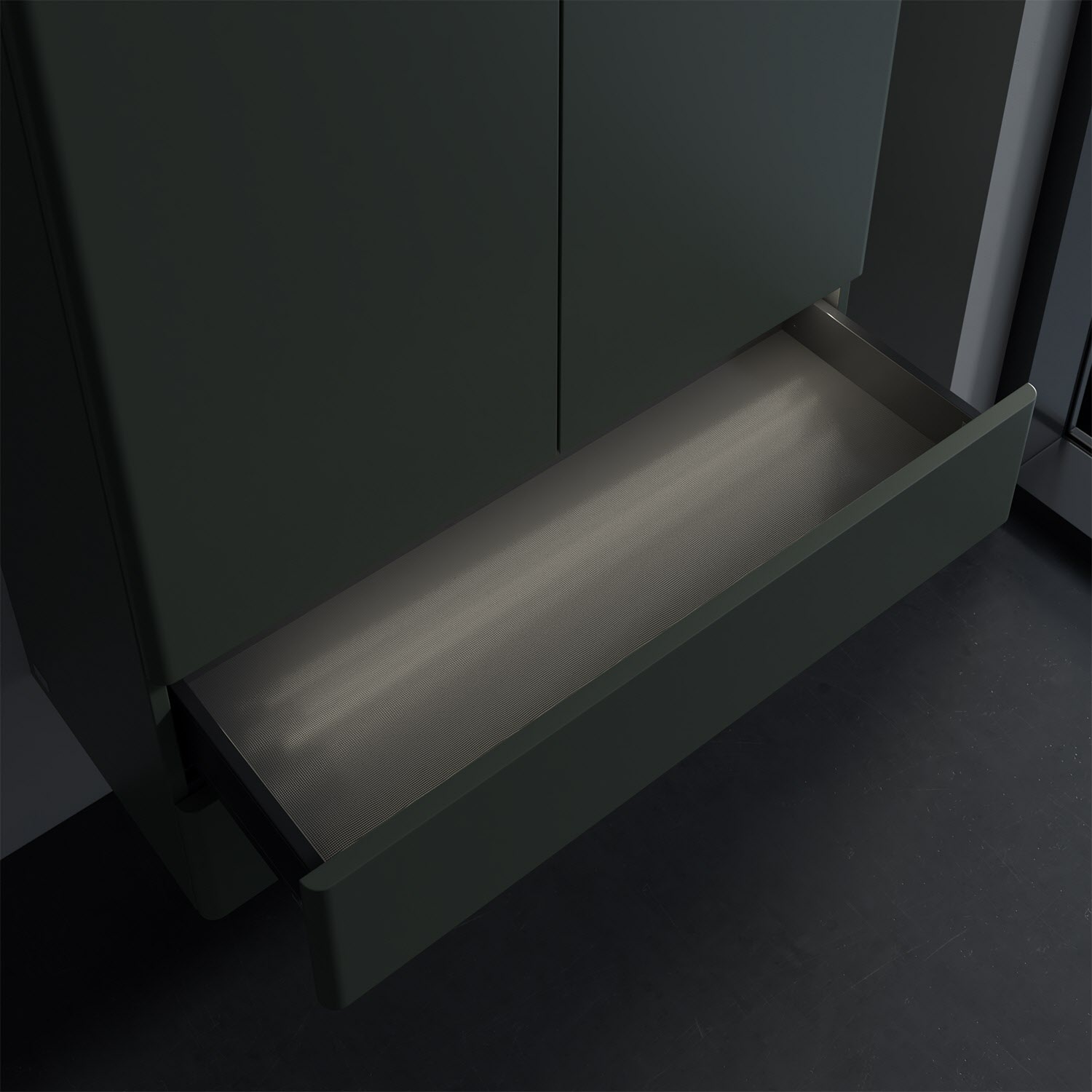 - kein Umfallen oder Verrutschen von Pflegeprodukten in den Schubladen dank rutschhemmendem Boden
