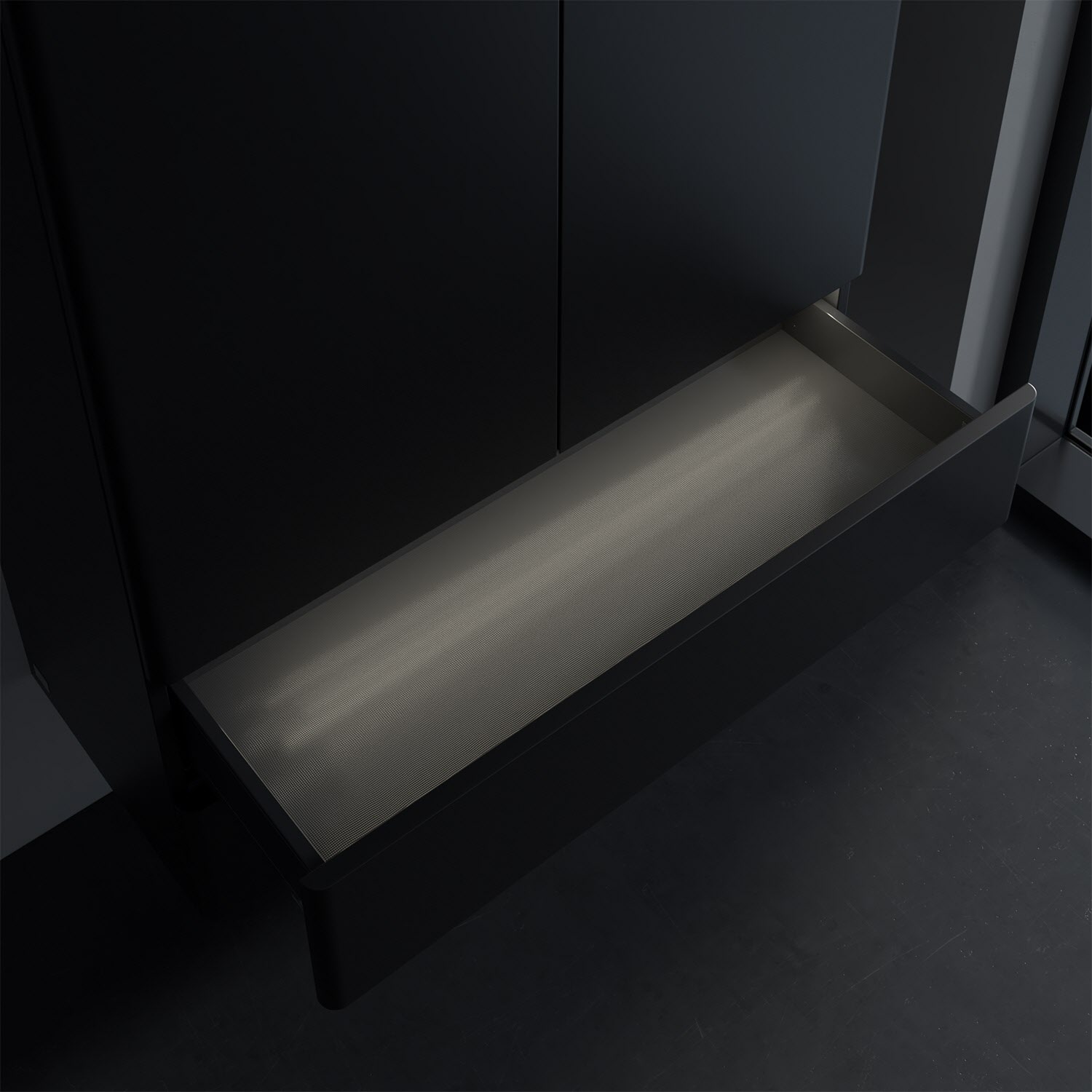 - kein Umfallen oder Verrutschen von Pflegeprodukten in den Schubladen dank rutschhemmendem Boden