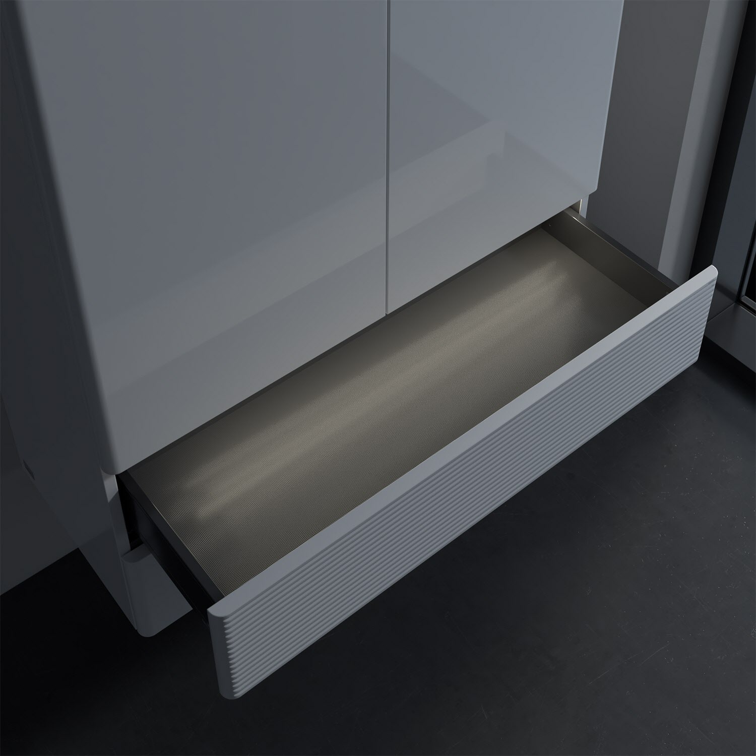 - kein Umfallen oder Verrutschen von Pflegeprodukten in den Schubladen dank rutschhemmendem Boden