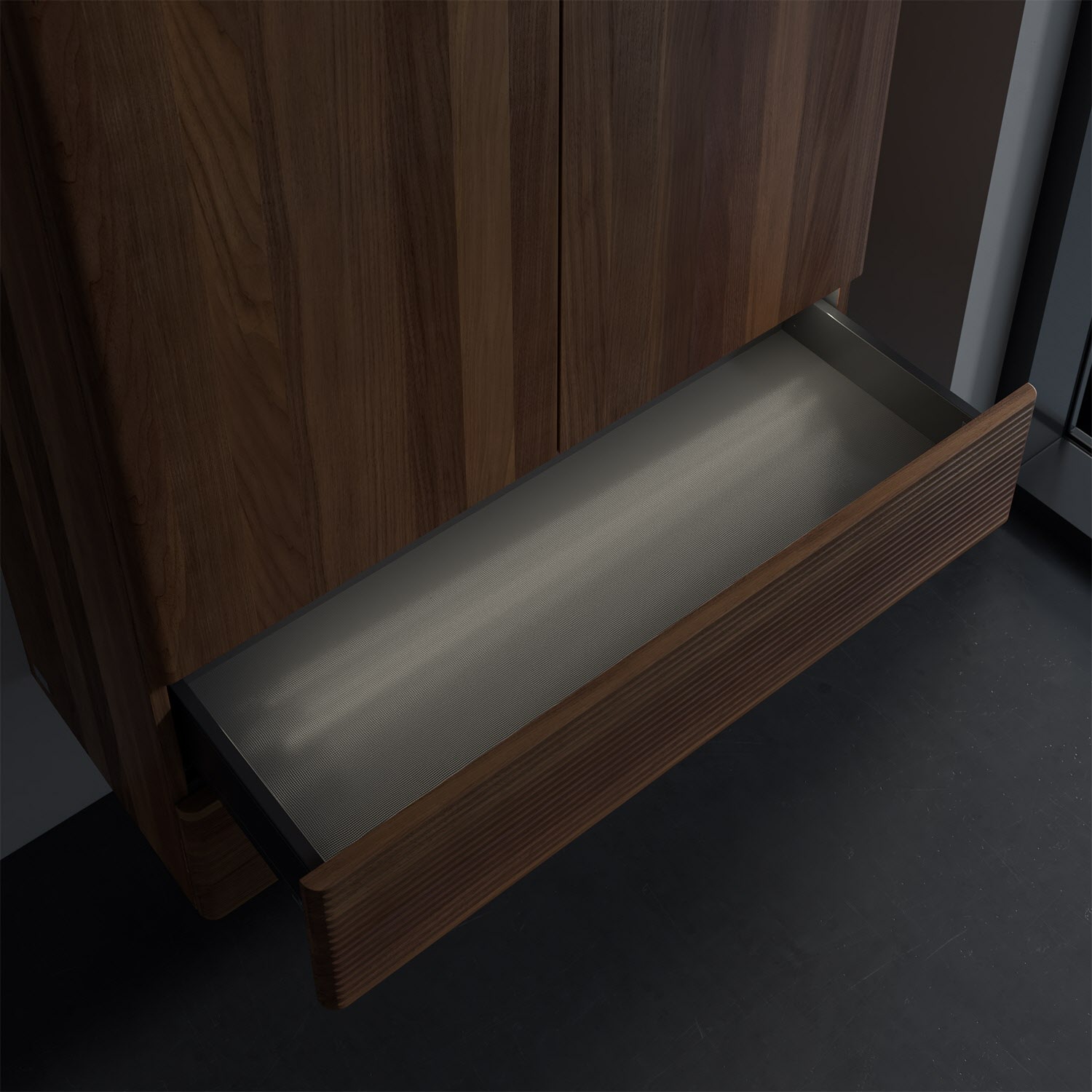 - kein Umfallen oder Verrutschen von Pflegeprodukten in den Schubladen dank rutschhemmendem Boden