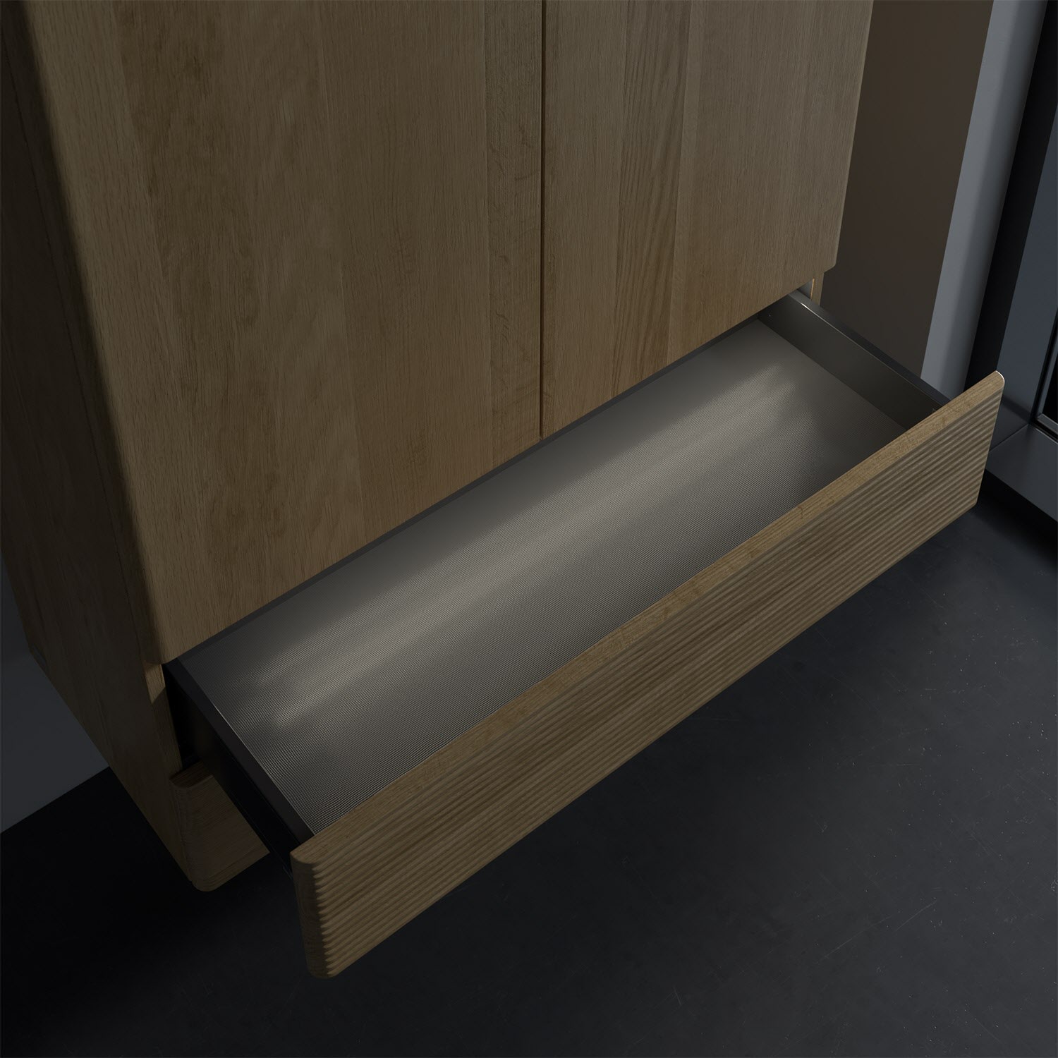 - kein Umfallen oder Verrutschen von Pflegeprodukten in den Schubladen dank rutschhemmendem Boden
