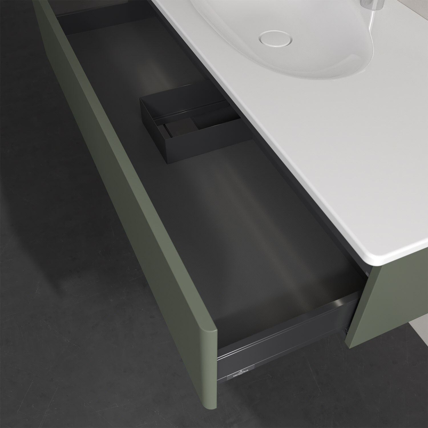 - kein Umfallen oder Verrutschen von Pflegeprodukten in den Schubladen dank rutschhemmendem Boden