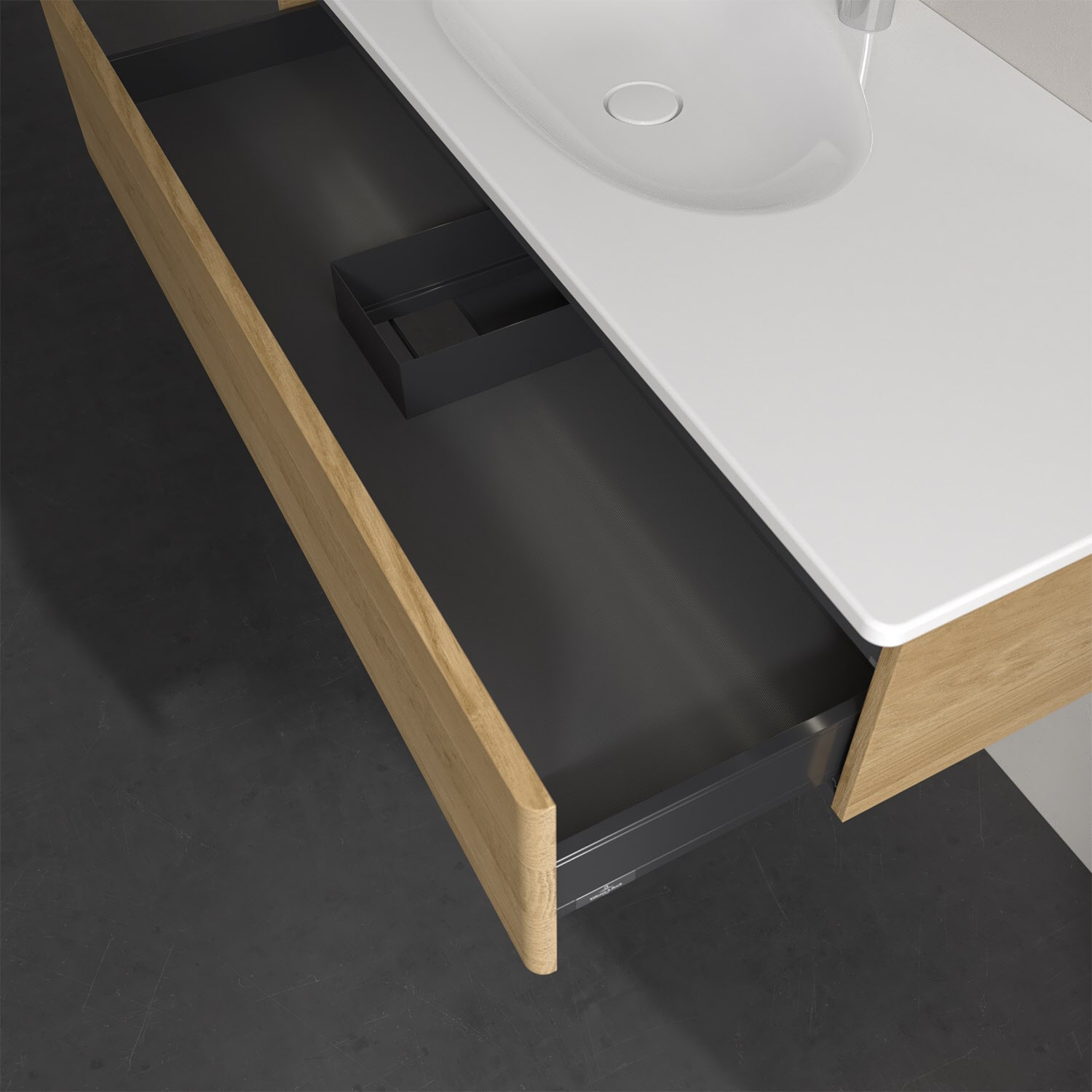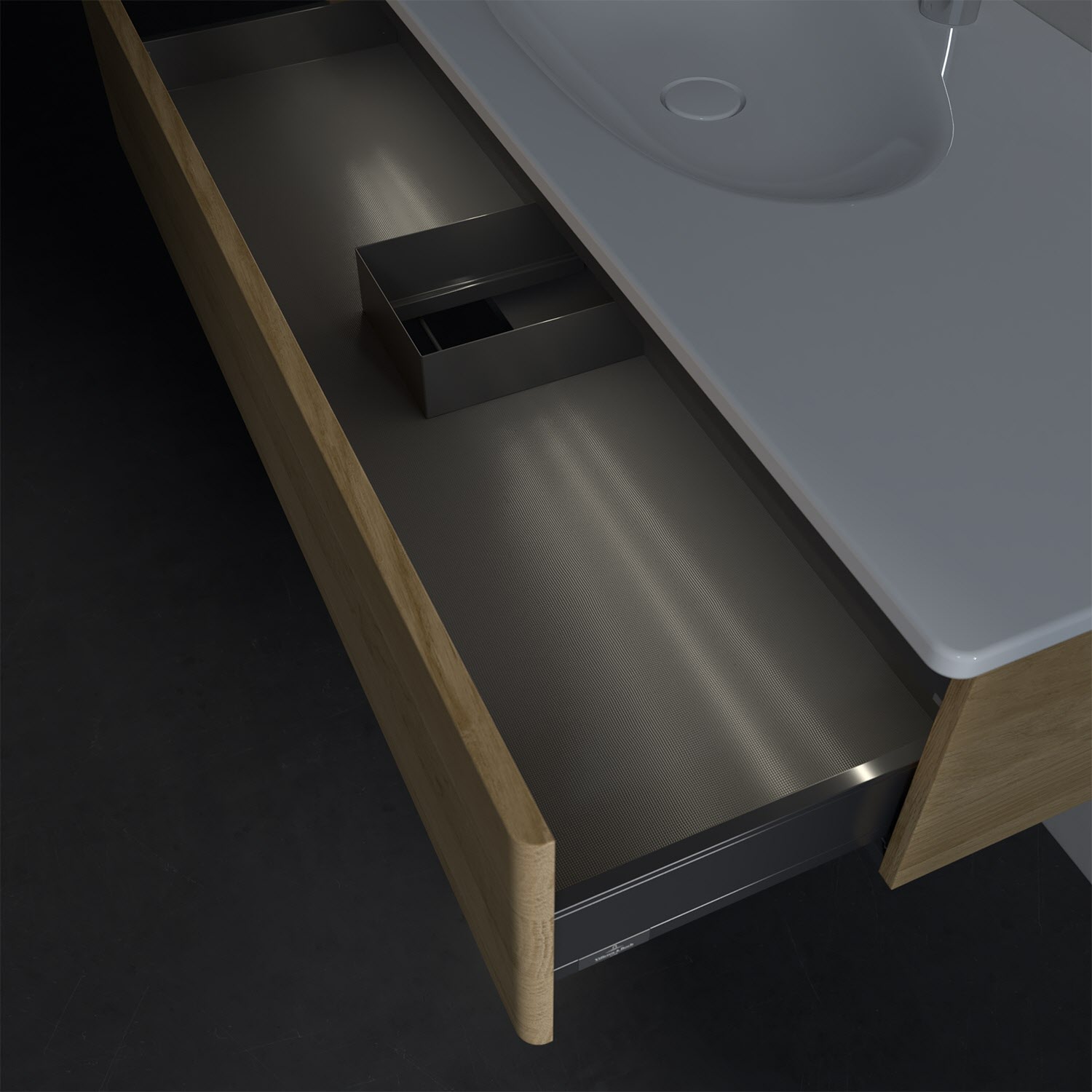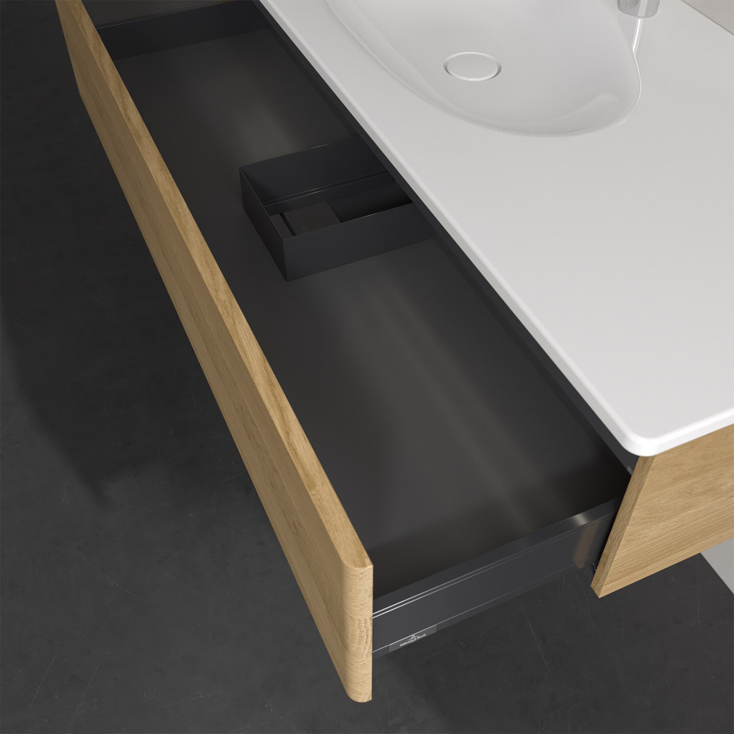 - kein Umfallen oder Verrutschen von Pflegeprodukten in den Schubladen dank rutschhemmendem Boden